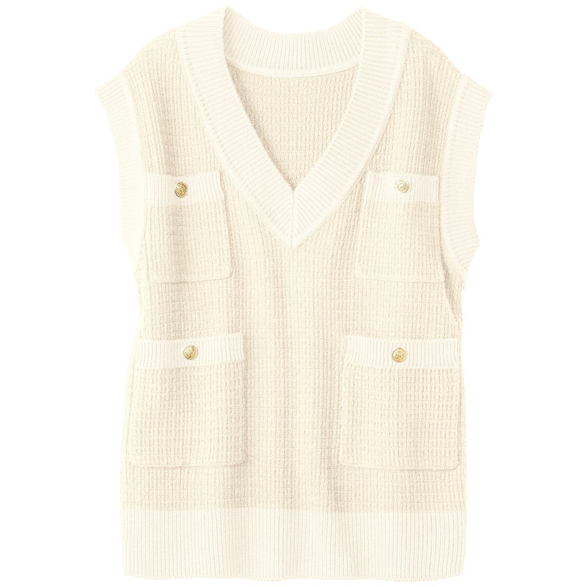 ポケットデザインニットベストオフホワイト系は主張し過ぎないゴールドラメが華やかで上品。