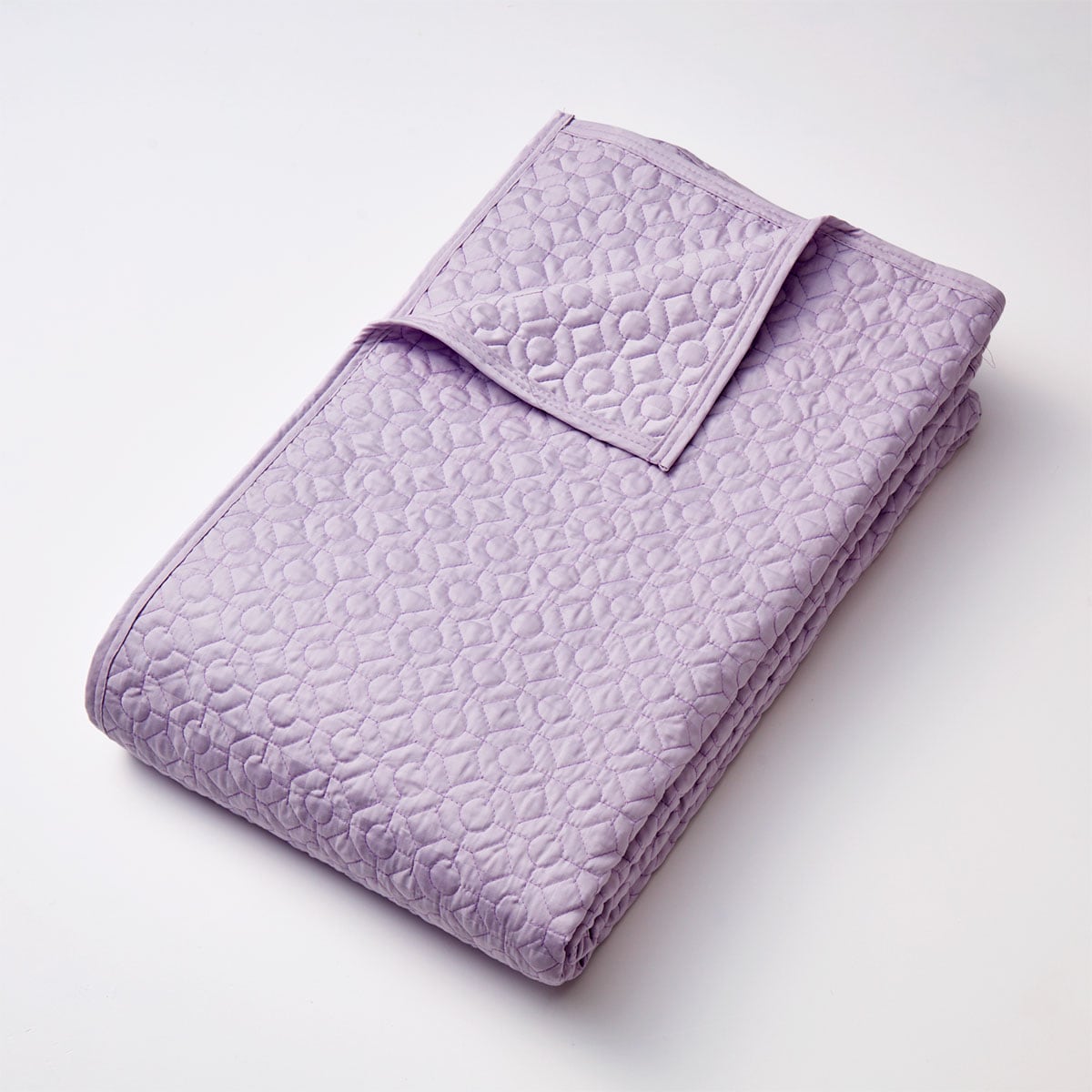 ベッドスプレッド生地拡大(ライラック)デザインキルトを施してあるので上品な印象に。