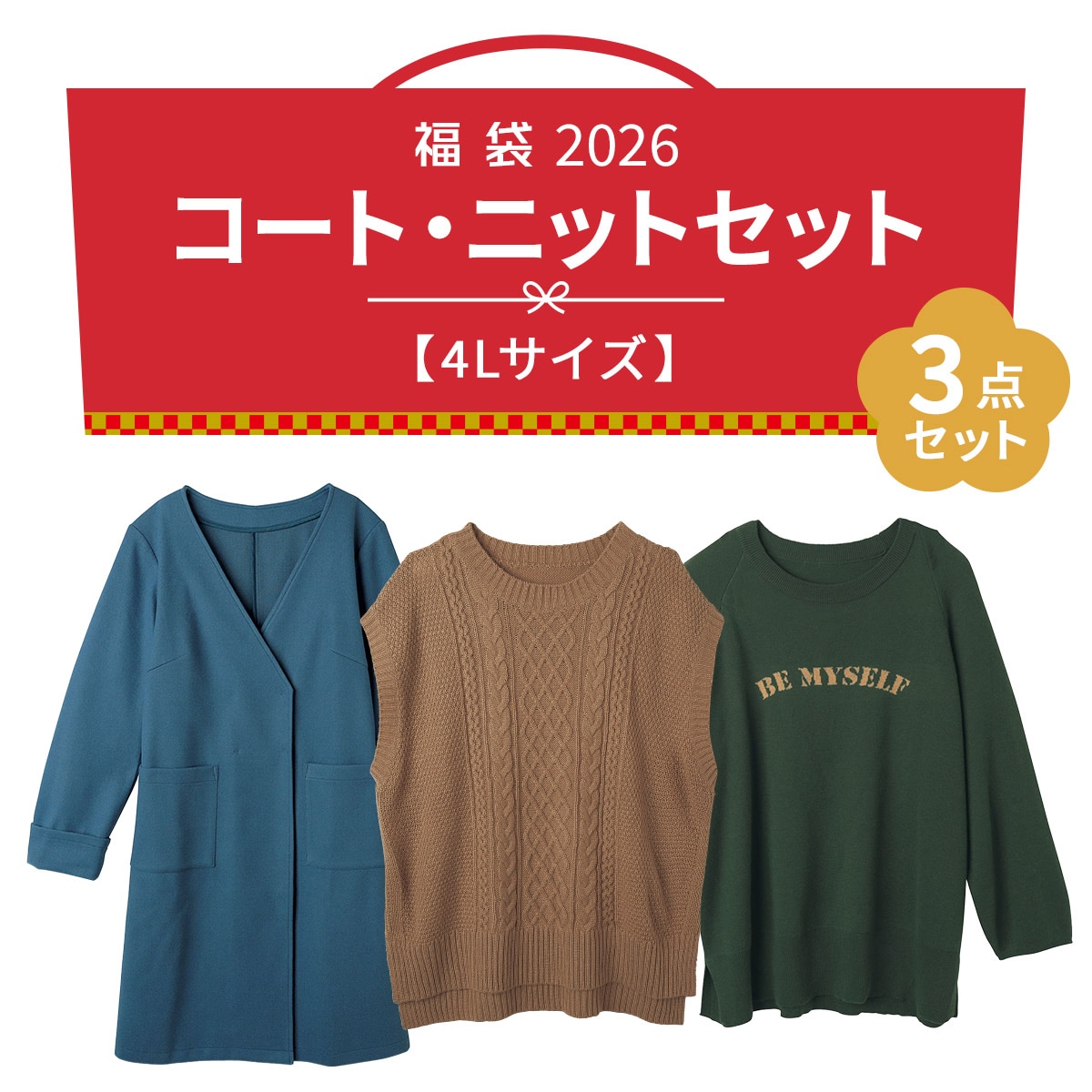 【ハッピーバッグ・4Lサイズ】コーデに活躍!お得なコートxニット3点セット