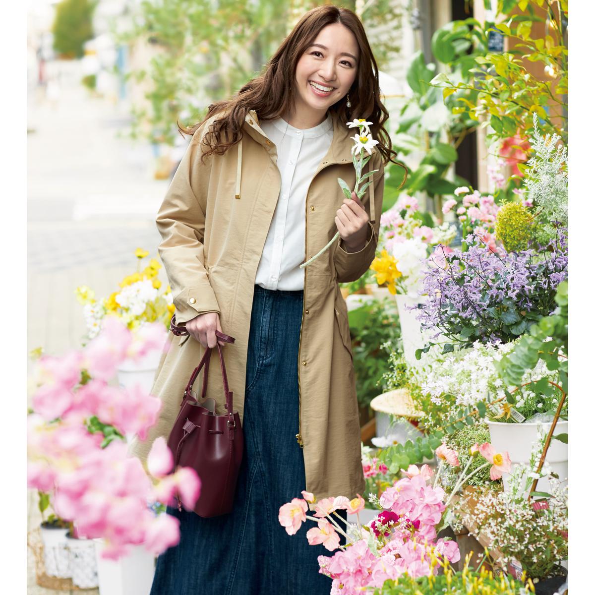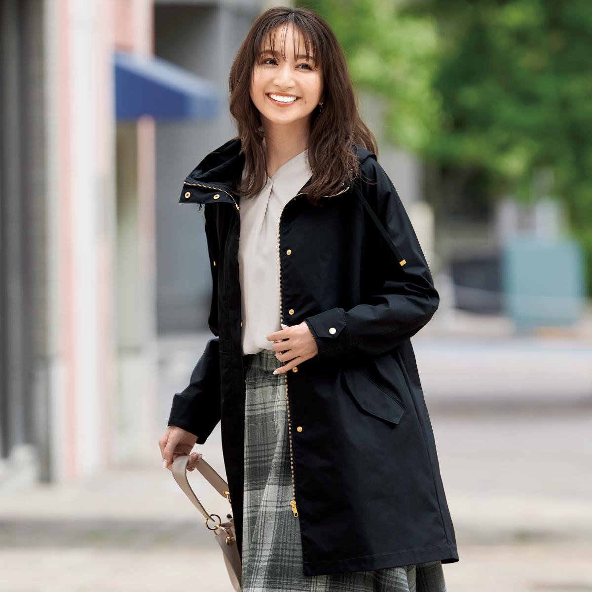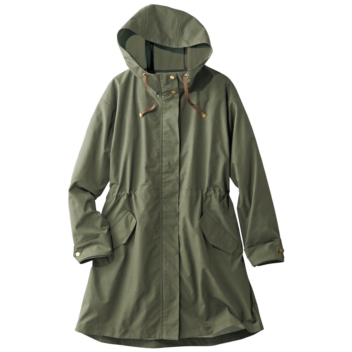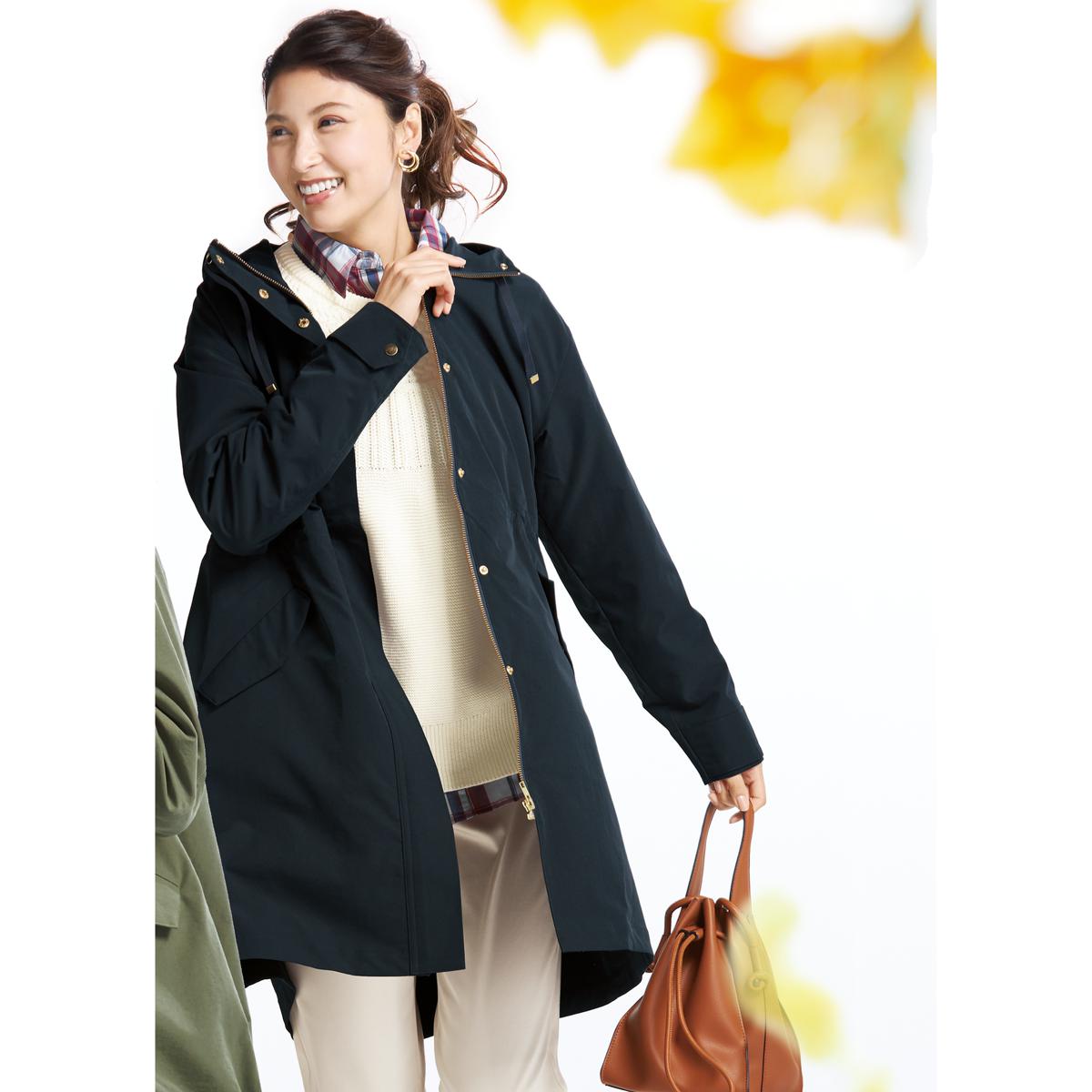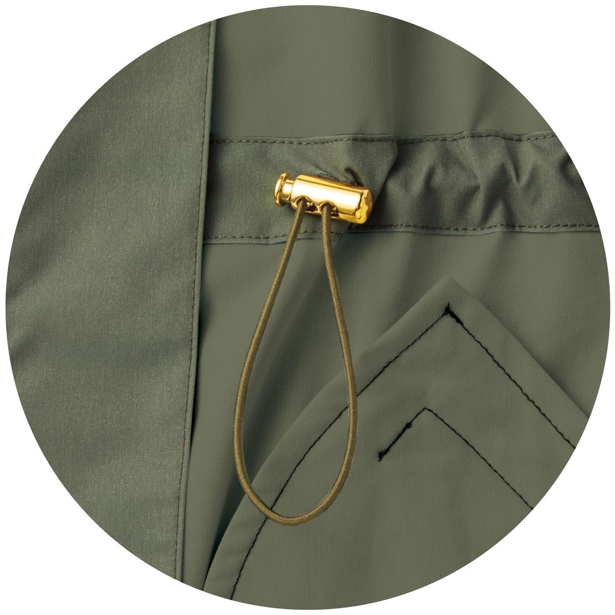 -お買得ポイント-UVカット機能、はっ水加工や速乾機能、洗濯機OKでシワになりにくい嬉しい機能がついています。ラクロンのエアフロー加工でふんわりやわらか、季節の変わり目に便利!!-デザイン-ボタンや金具はゴールドで上品に。衿を高くして風が通りにくくし、大き目のフラップ付ポケットで中身も落ちにくい。ウエスト内側にドロスト付でシルエットの変化も楽しめます。-素材特徴-ラクロンはナチュラル感が特長のポリエステル糸。乾きが早く、さらりとした着心地が続きます。