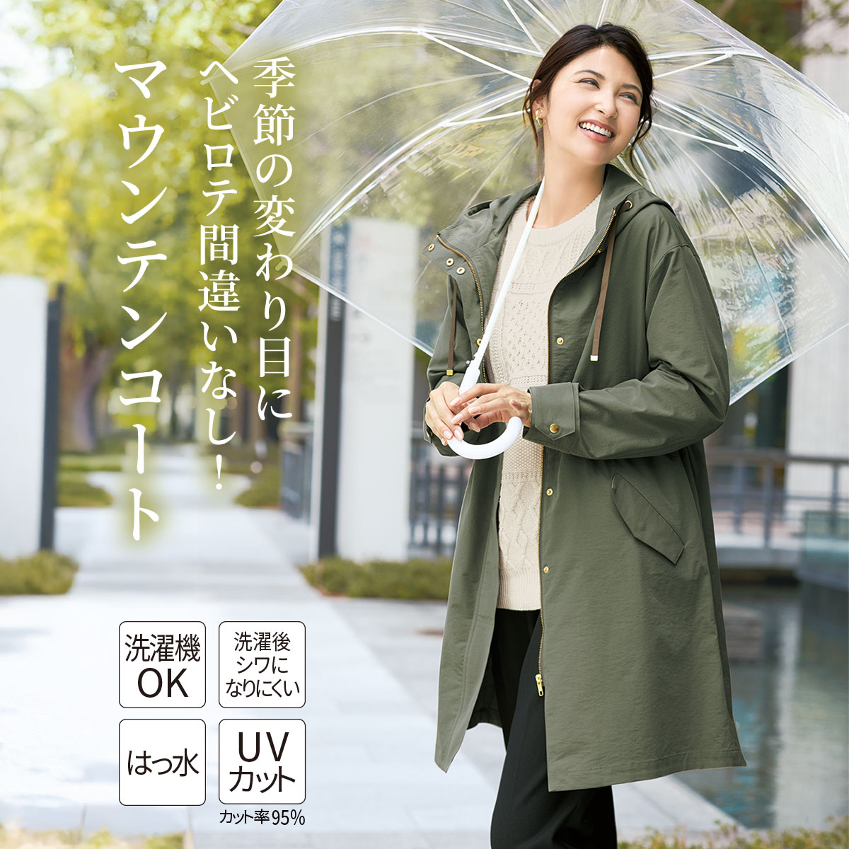 洗濯機で洗えてお手入れ簡単に!はっ水加工とUV95%カットで雨でも晴れでもこれ一枚で安心な、マウンテンコート♪