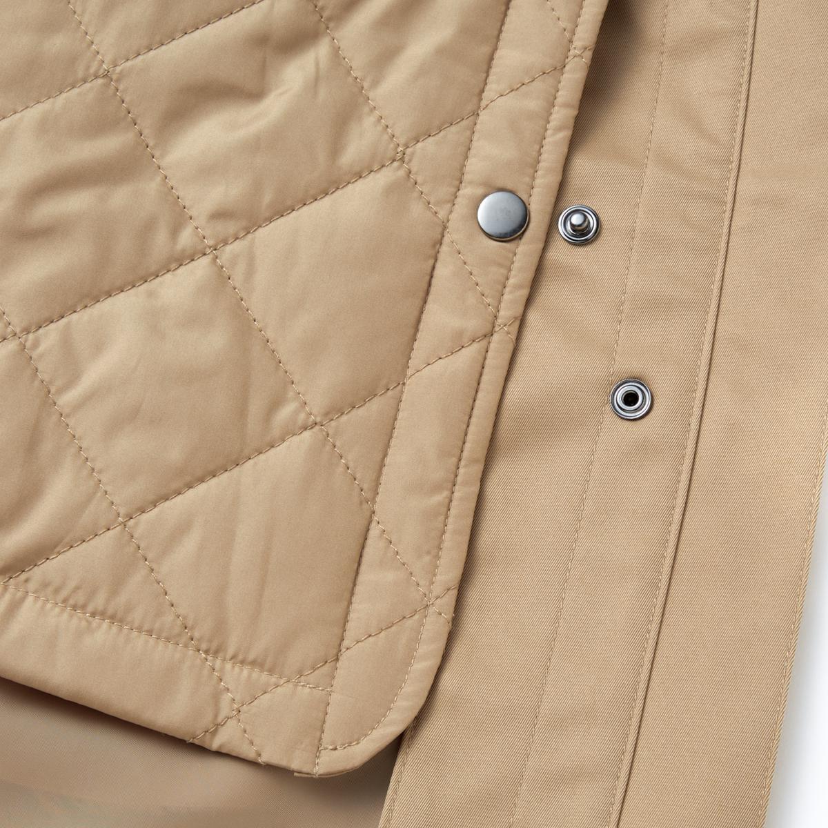 ■[コート]ポリエステル100%(ツイル) 裏地あり [ライナー]ポリエステル100%(タフタ) 中わた/ポリエステル100%●[コート]前左右フラップ付ポケット・ウエストドロスト仕様・後ろベンツ入り [ライナー]前左右ポケット ●重量/約1120g(Mサイズ●コート:洗濯機OK ライナー:手洗いOK●中国製