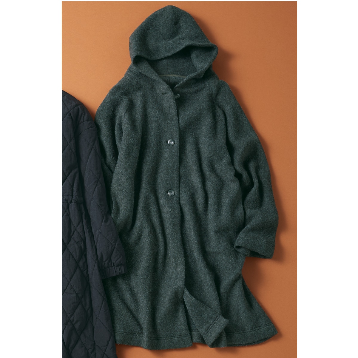 -お買い得ポイント-ふんわり軽く、サッと羽織るだけで着こなしが完成します。-デザイン-軽量スライバー風ニットでフード付きの首まわりまであったかいコーディガンを作りました。-素材特徴-空気を多く含むため「エアリー」で軽く、ボリューム感のあるふんわりとした肌触りと高い保温性が特徴です。