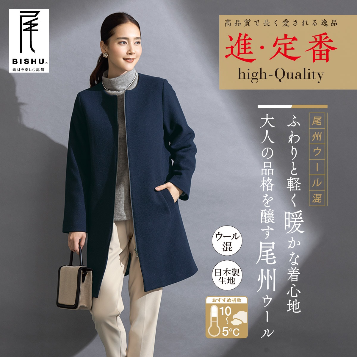 -お買い得ポイント-ふんわりとした温もり感溢れ、シンプルデザインで季節のスタイリングに幅を持たせる逸品です。-デザイン-程よくゆとりのあるシルエットながら、縦ラインを効かせたフロントジップでスタイリッシュな佇まいに。-素材特徴-世界三大毛織物産地美の品質の尾州ウールを使用。日本最大の毛織物産地として発展してきた愛知県尾州地区で糸から一貫生産される「尾州織り」は、世界の有名ブランドも採用するなど、高いクオリティが特徴です。