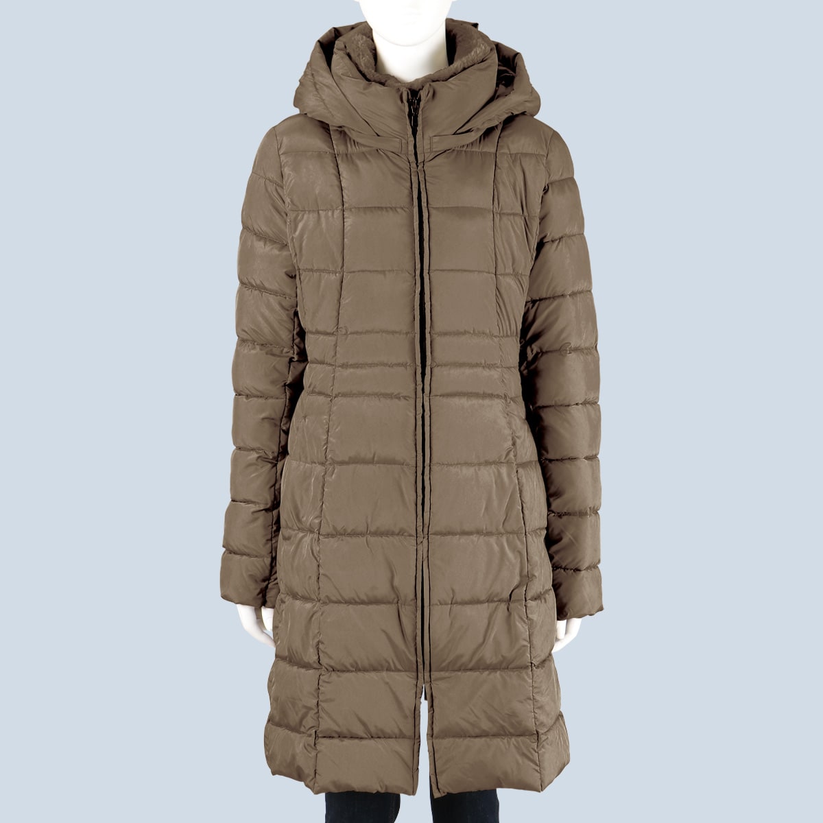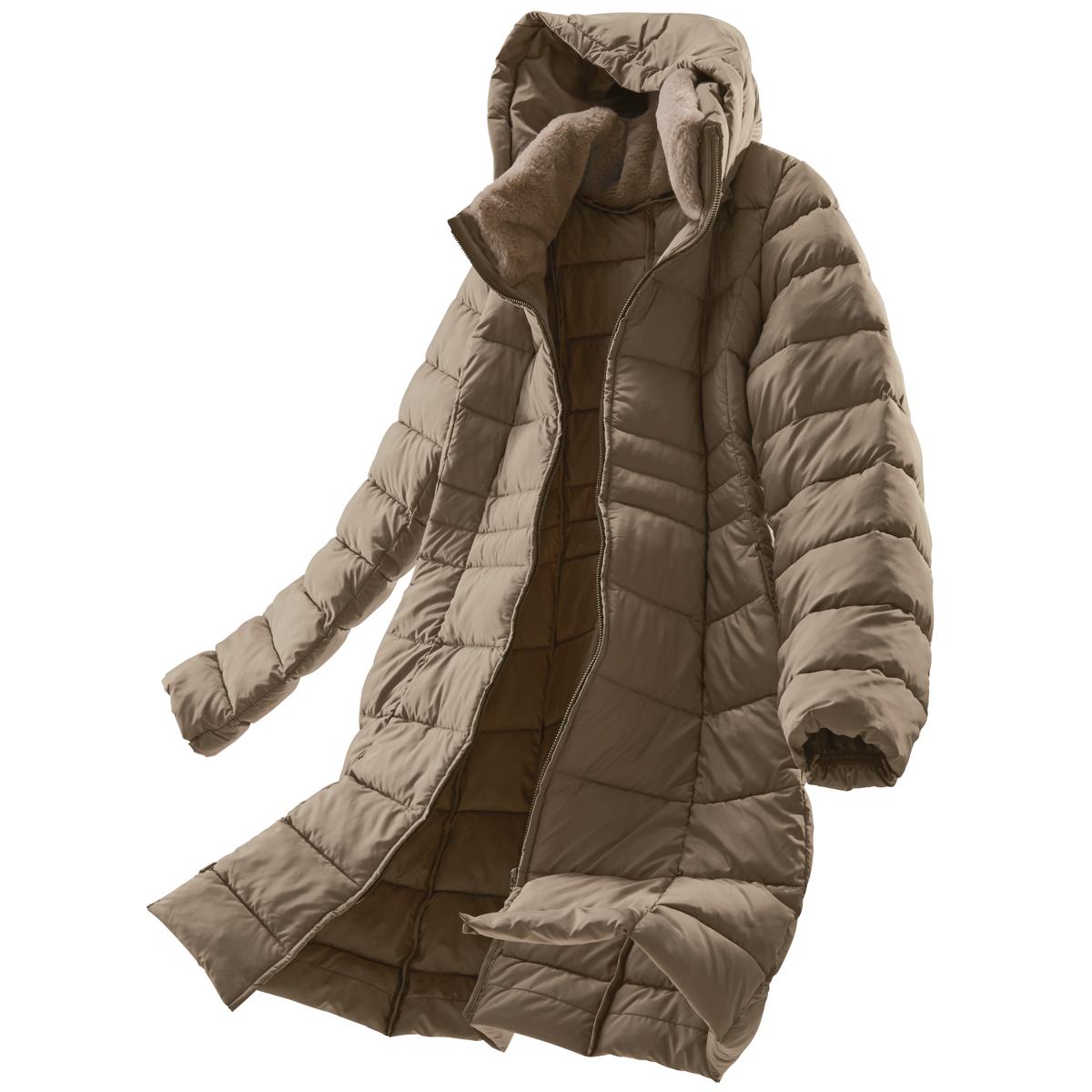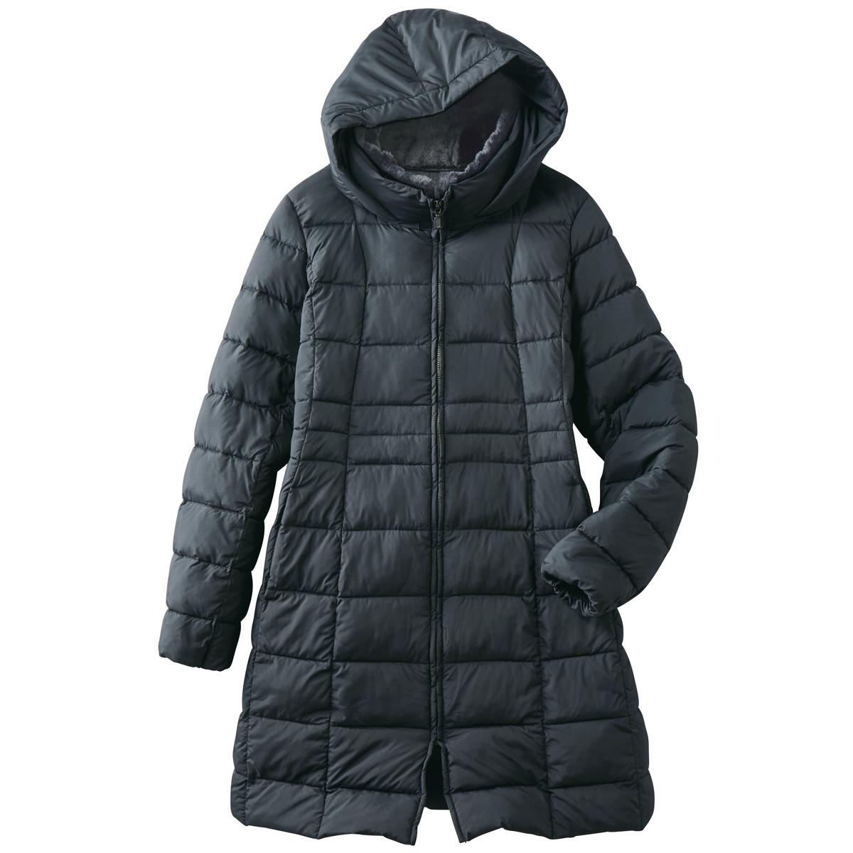 一度着たら、もう手放せない!セシール最軽量のファイバーロングダウン!ウエスト部分にカッティングの差を出し、スッキリとした印象。