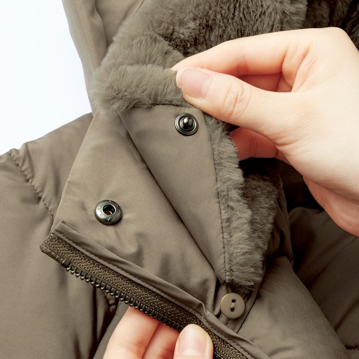 寒い日に使いやすい快適仕様 スナップボタンとボタンで取り外せる衿内側ファー