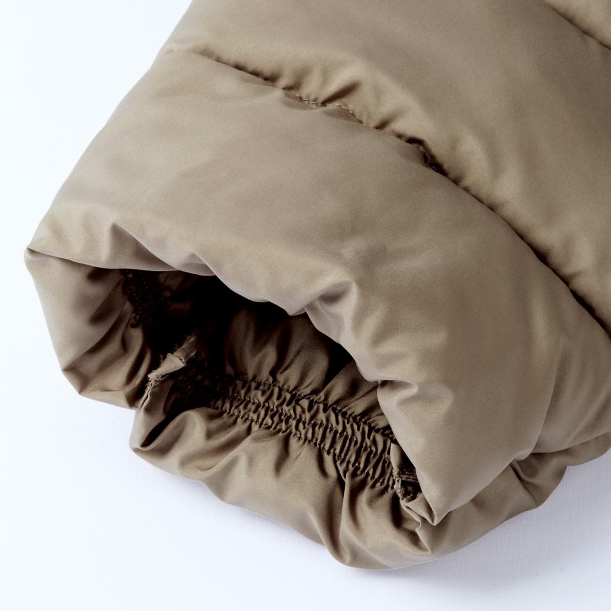 ■[表面・裏面]ポリエステル100%(タフタ) 中わた/ポリエステル100% 取り外し可能衿部分/ポリエステル100%(フェイクファー)裏地なし●フード取り外し可能・取り外し可能ファー衿つき・袖口内側ゴム仕様・前左右ポケット●重量/約620g(Mサイズ)●手洗いOK●中国製