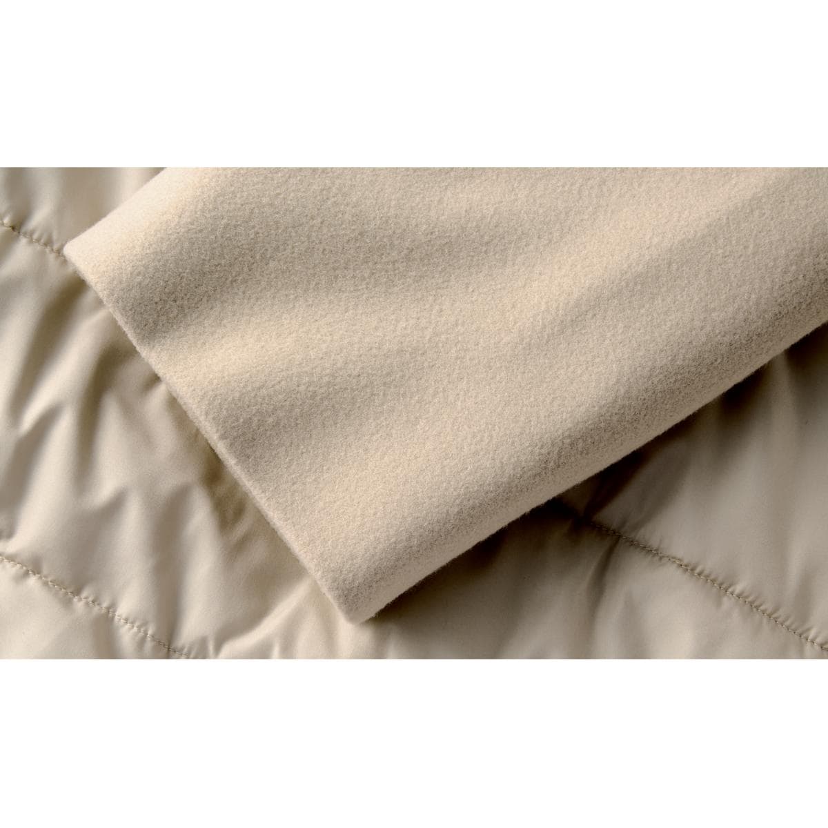 上身頃には、中心部に空洞があるポリエステル「中空糸」を使ったウール調素材を使用。空気を含んでふんわり暖かく軽い着用感です。下身頃はリサイクル蓄熱中わた((ETHERMALOFTRR))入りであったか