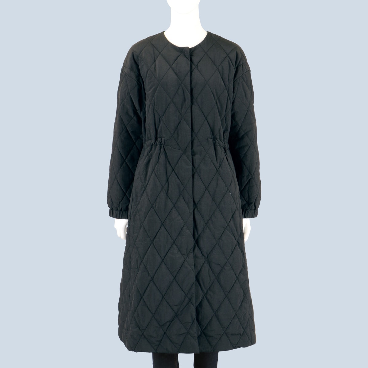 -お買い得ポイント-寒い日もキルティングなので軽やかに着れるところがポイントです。ノーカラーなので、顔回りすっきりとした印象へ。-デザイン-袖口にはゴムを入れることで風が入らずあたたかく着れます。ウエストを絞れることで、すっきりとしたシルエットになり足長効果も♪-素材特徴-表面感のあるワッシャー加工、中わたは保温性のあるリサイクル蓄熱保温中わたETHERMALOFT®を使用。洗濯機でのお洗濯も可能なのでケアも簡単。