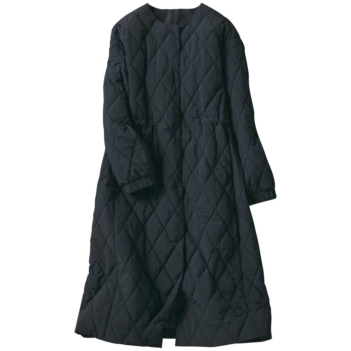薄くて軽くあたたかなキルト素材のロングコート。保温性のあるリサイクル蓄熱保温中わたETHERMALOFT®を使用。