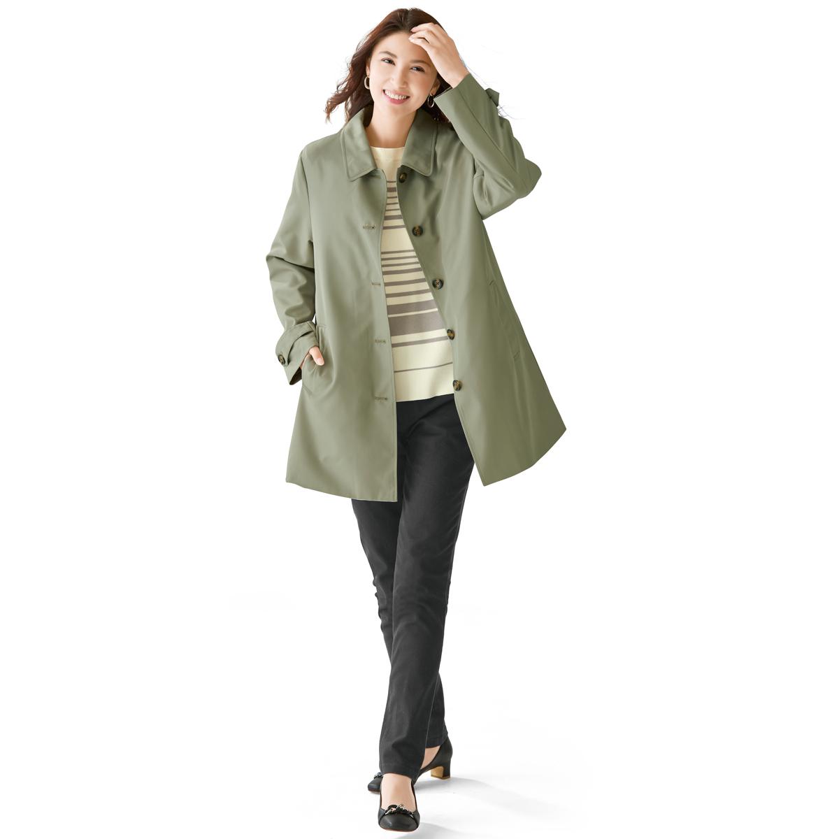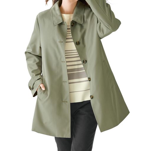 -お買い得ポイント-ライナー付きで、気温に合わせて着脱可能。まだ肌寒い春先から長くご着用いただけます。花粉がつきにくく、はっ水加工を施しているので突然の雨でも安心です。-デザイン-ベーシックで着やすいステンカラーコートを、バランスよく着こなせて着回ししやすい75cm丈と上品な印象の85cm丈の2丈からお好みでお選びいただけます。-素材特徴-つるんとなめらかな素材に日本製の繊細な凹凸ナノ粒子を生地表面に付与することで花粉が付きにくくなっています。