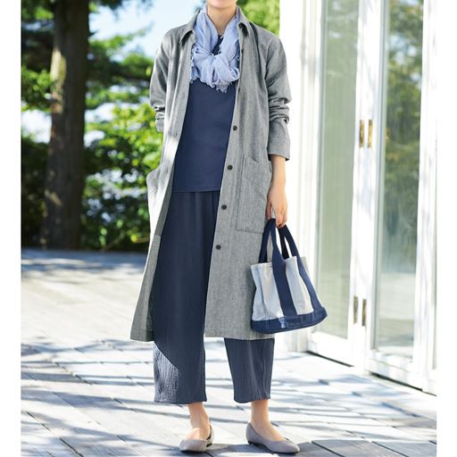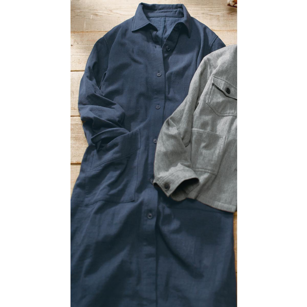 非常に軽く、羽織るだけでサマになるステンカラーコートです。綿100%のナチュラルな風合いで、洗うたびになじむ心地よい素材が特徴です。