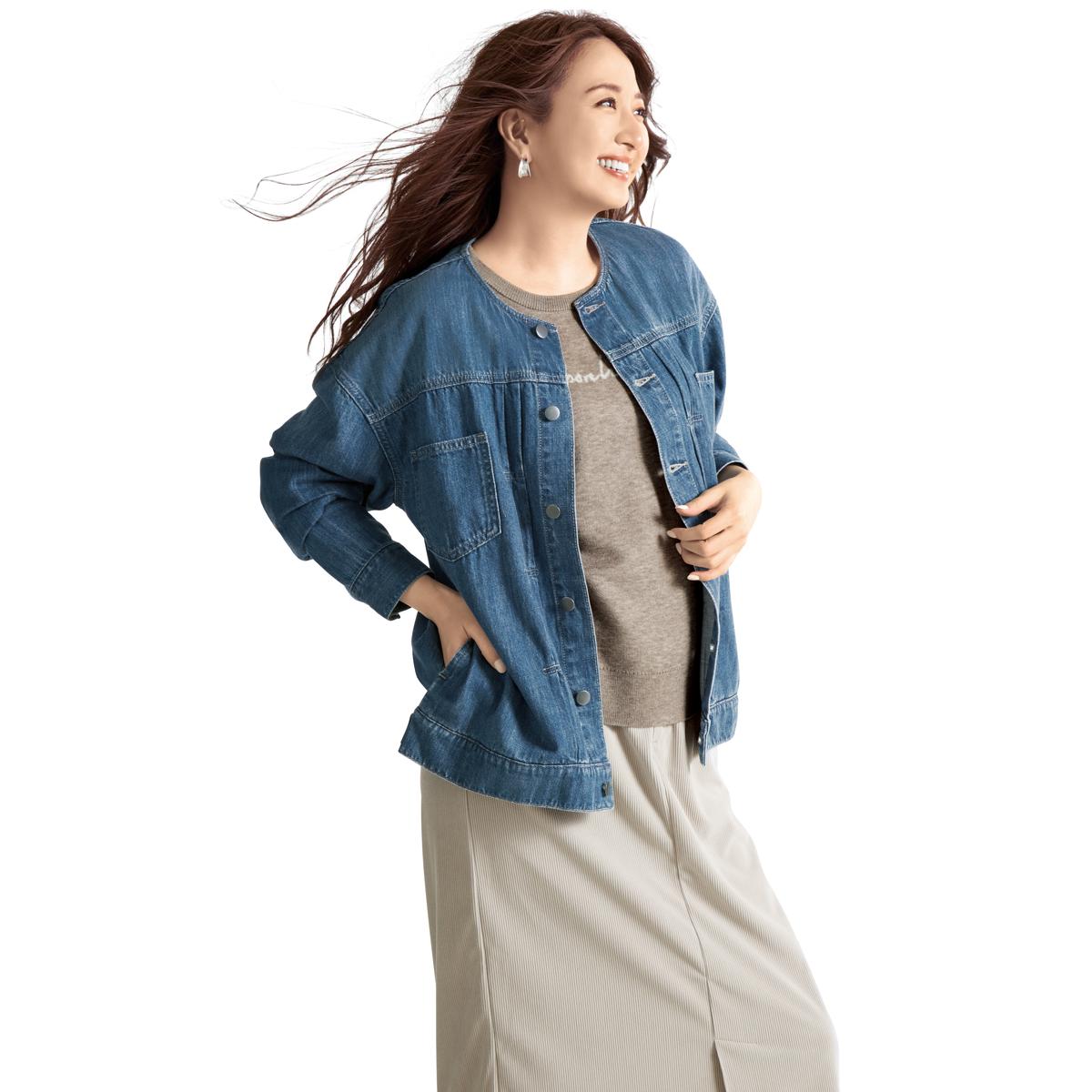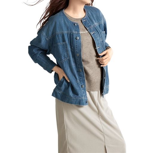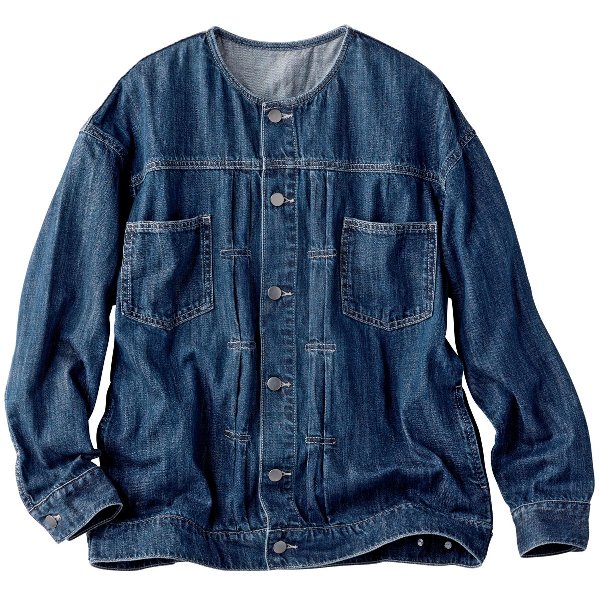 お買い得ポイント-窮屈感のないシルエットと軽やかな着心地が大人カジュアルにぴったり。-デザイン-ノーカラーですっきり見え。後ろ裾ボタンでシルエットを調整できます。-素材特徴-柔らかな生地がデニムのゴワつきを解消。まるで空気のような着心地です。