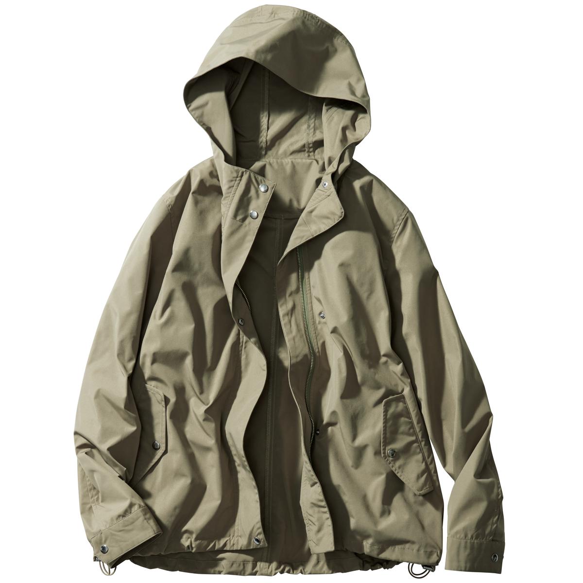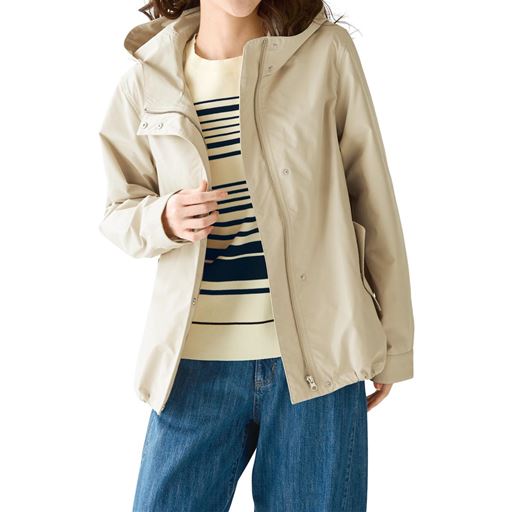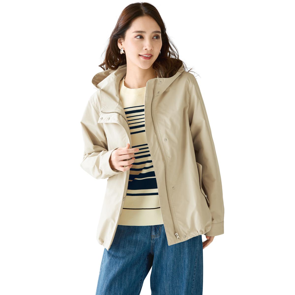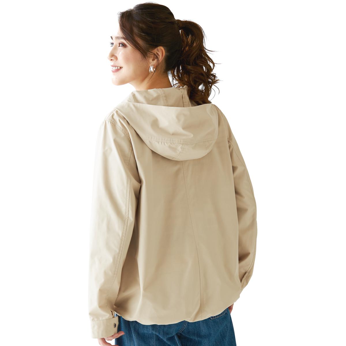 -お買い得ポイント-サッと羽織って、アクティブに動けるライトな着用感です。-デザイン-裾のドロストを絞れば、丸みのあるシルエットを楽しめます。軽やかに動けて着回しやすいショート丈。-素材特徴-花粉ガード機能を加えた、ハリ感のあるしっかりとした素材。はっ水加工を施しており、急な雨でも安心です。