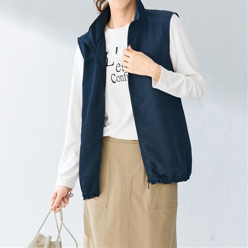 Tシャツとの重ね着もできるから、季節を超えて重宝します。ヒップにかかる長め丈と丸みのあるシルエットで体型をカバー。