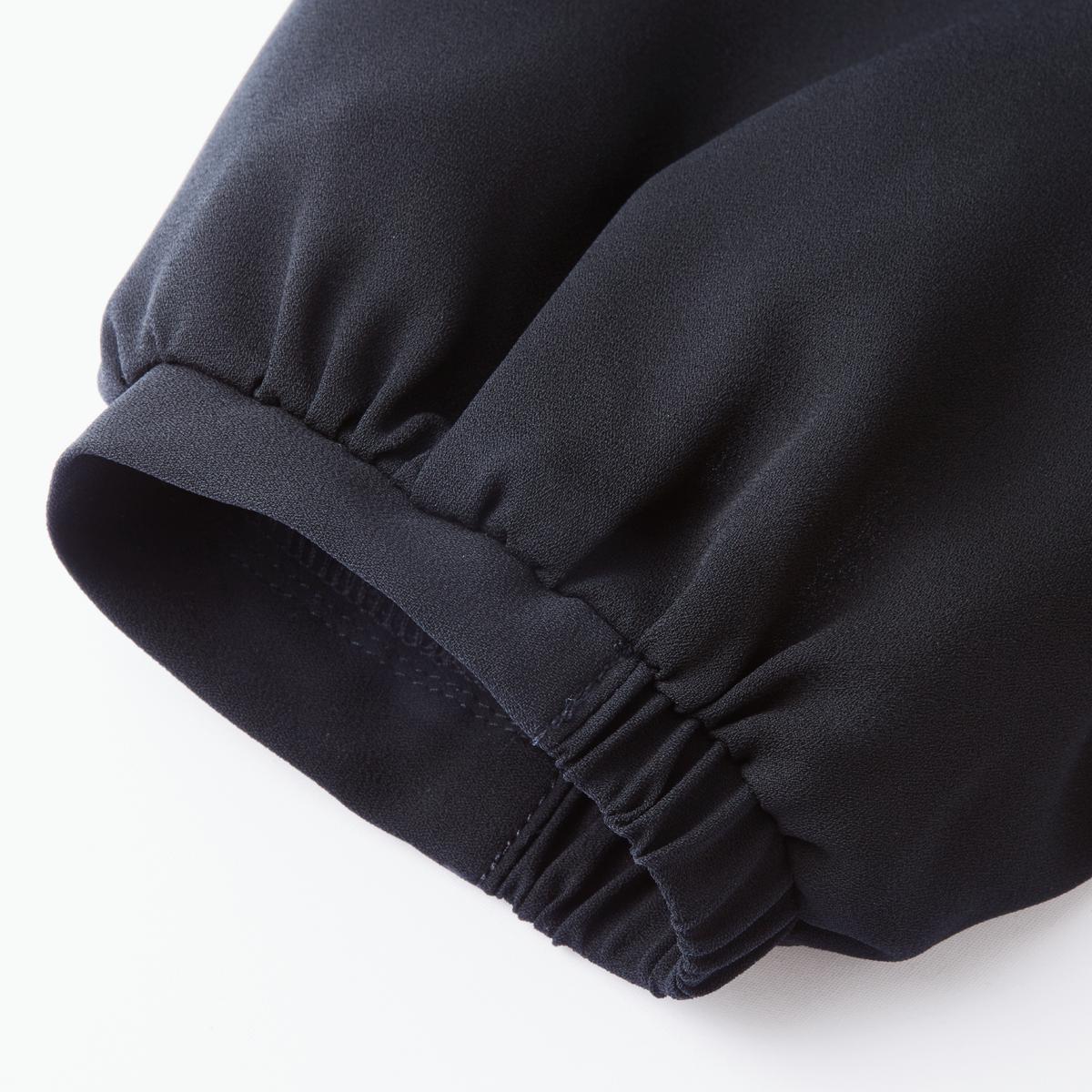 ■ポリエステル100%(ダブルクロス ブラウス部分/ジョーゼット) 身頃のみ裏地あり●前ファスナーあき・両脇ポケット・袖口内側ゴム仕様・取り外し可能リボンブローチ付き●洗濯機OK●中国製(生地:日本製)