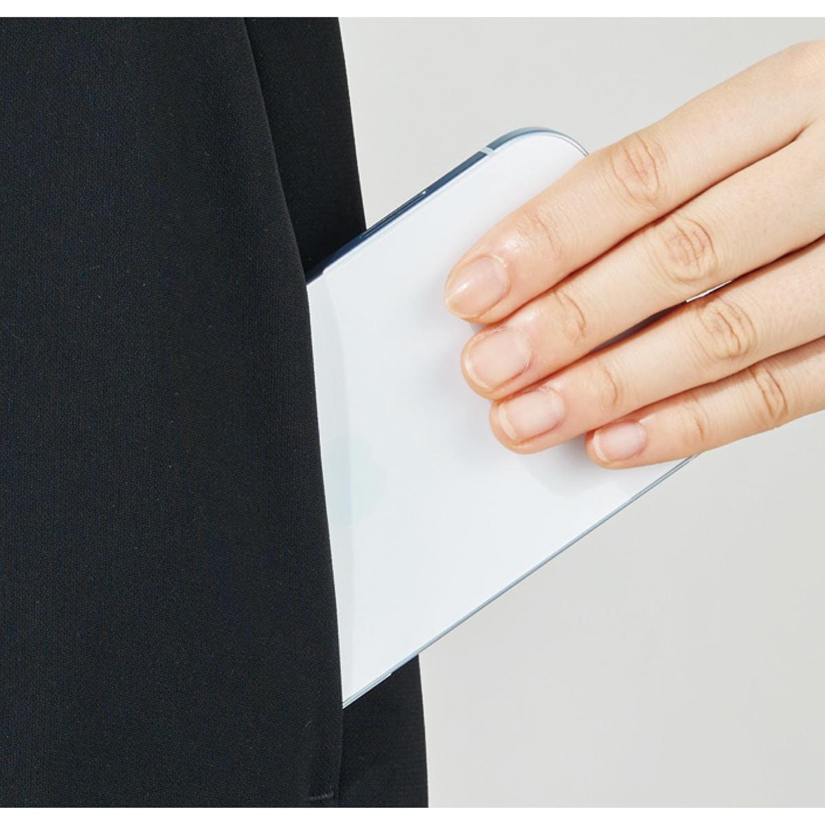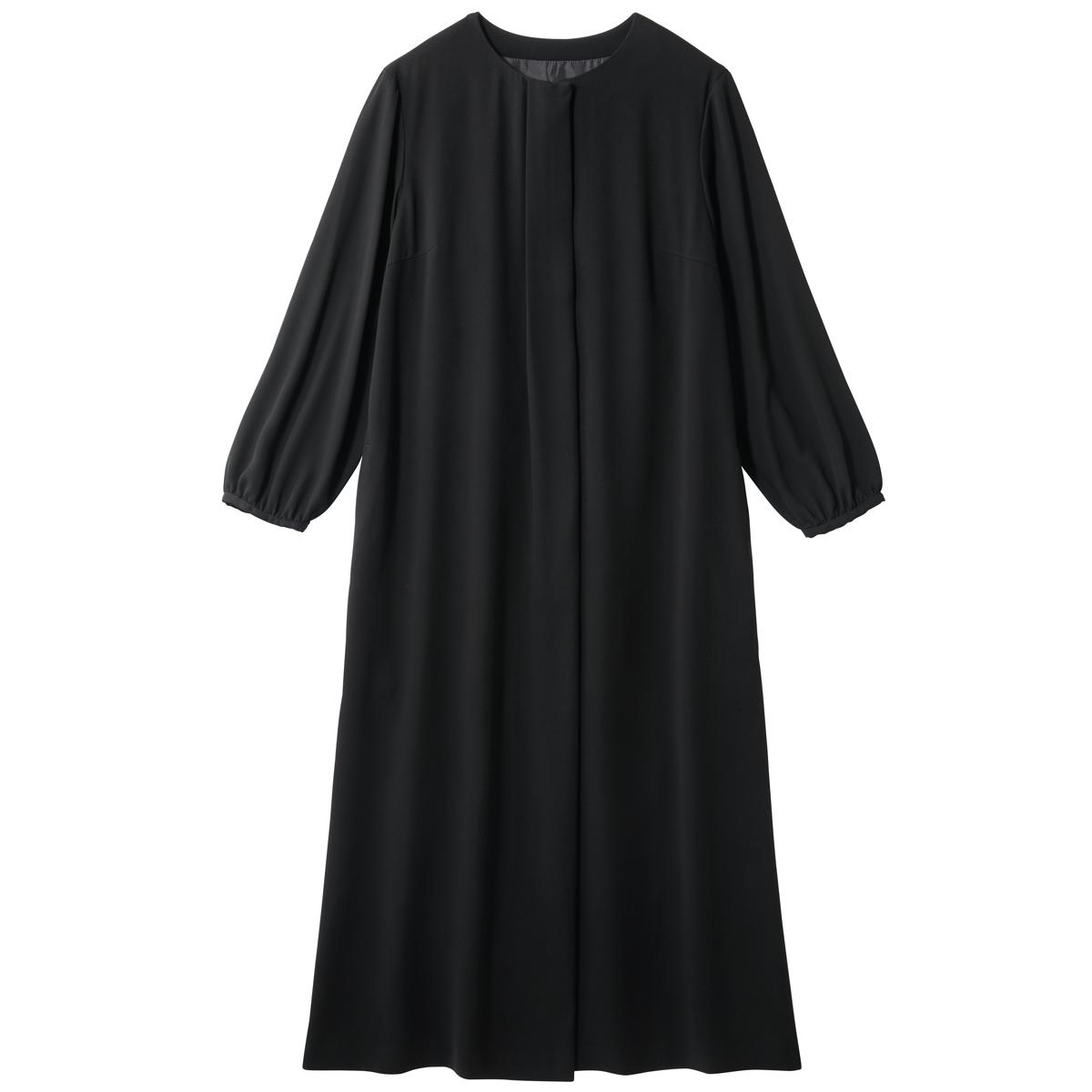 -お買い得ポイント-凛とした美しさが宿る、程よい光沢とシンプルなデザインのアンサンブルです。ワンピースとジャケットの2点セット、もちろん単品使いもOKです。-デザイン-大きく開くフロントファスナーで脱ぎ着がラク。スマホがすっぽり入る大きめポケット付き。-素材特徴-濃く深みのある黒を風合い豊かに染め上げた、日本製生地を使用。
