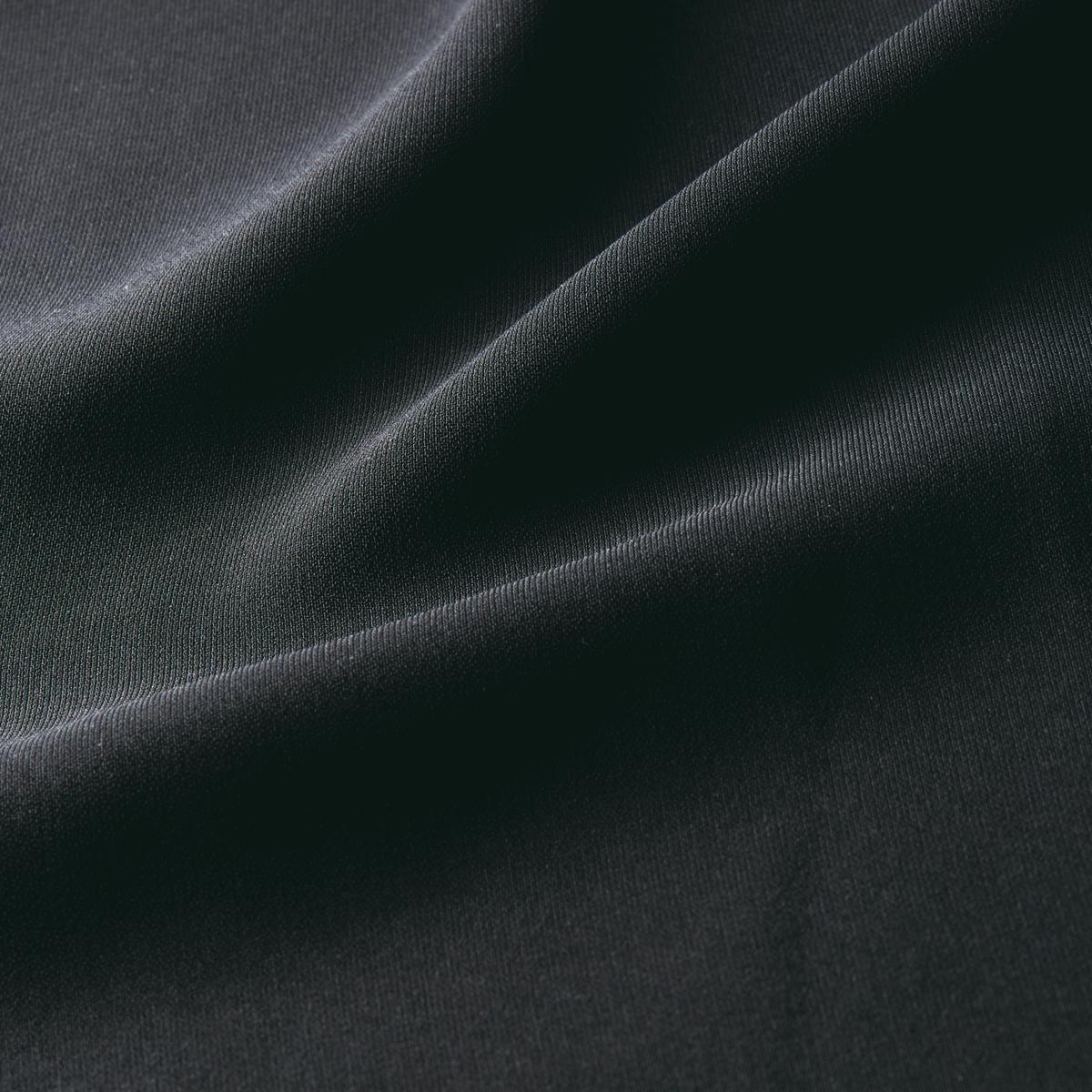-お買い得ポイント-程よい光沢のサテン素材にシンプルなデザインが凛とした佇まいを醸し出しています。-デザイン-大きく開くフロントファスナーで脱ぎ着がラク。スマホがすっぽり入る大きめポケット付き。-素材特徴-濃く深みのある黒を風合い豊かに染め上げた、日本製生地を使用。自宅の洗濯機で洗えるのもうれしいポイントです。