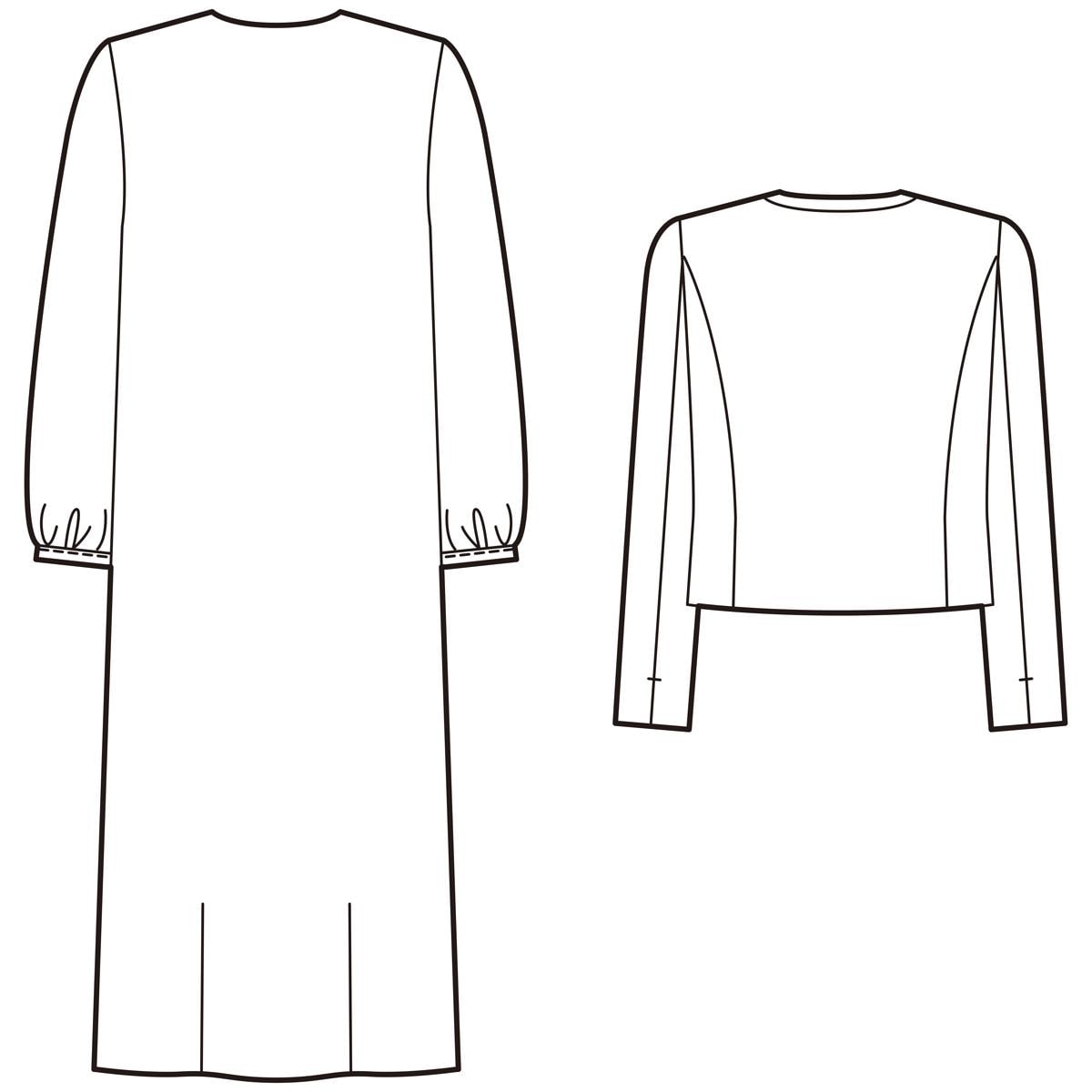 ■[ジャケット]ポリエステル100%(織物)裏地あり[ワンピース]ポリエステル100%(織物) 裏地あり(身頃のみ)●[ジャケット]両脇ポケット[ワンピース] 前ファスナーあき・両脇ポケット●洗濯機OK●中国製(表生地:日本製)