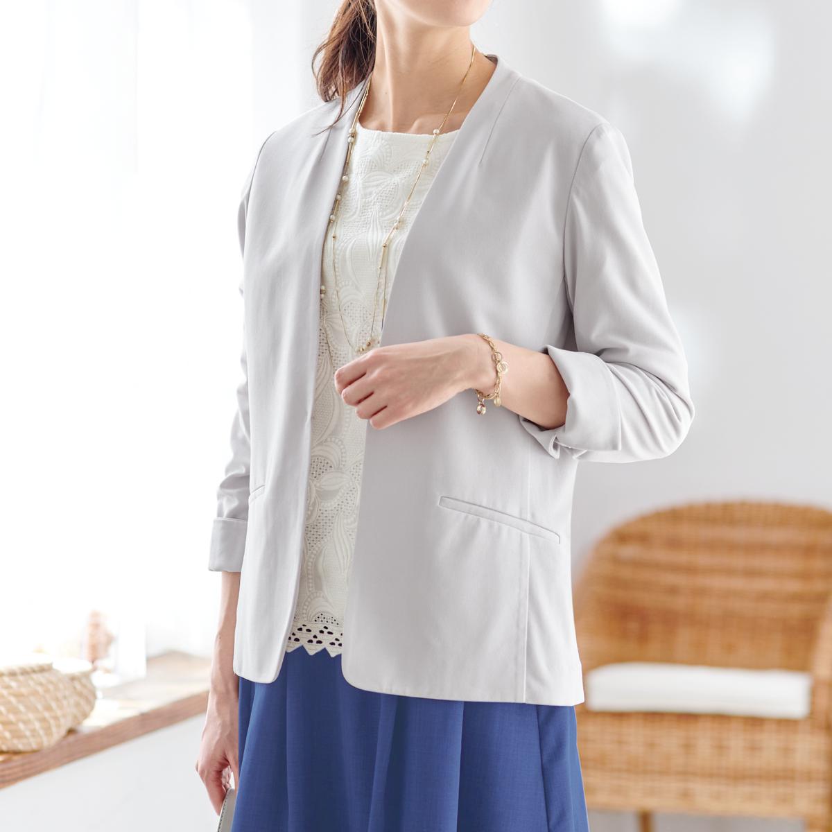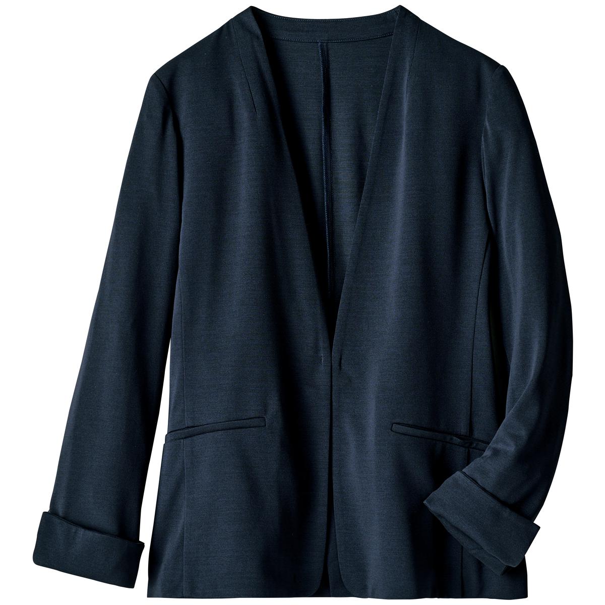麻調ジャージノーカラージャケット(接触冷感・UVカット・洗濯機OK・シワになりにくい)