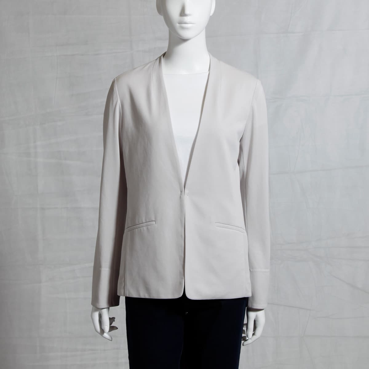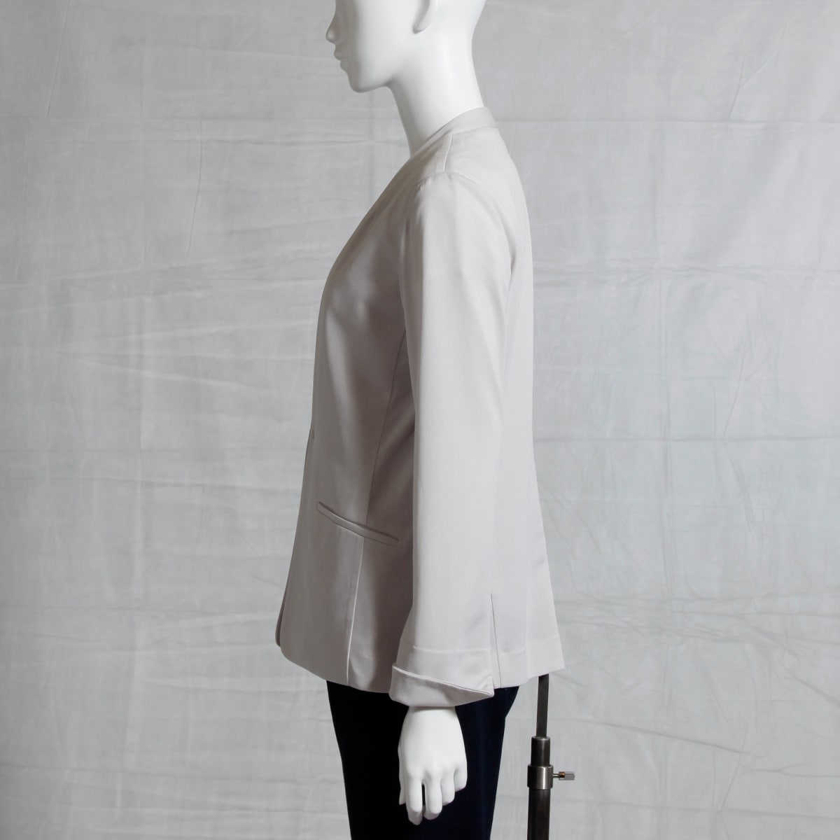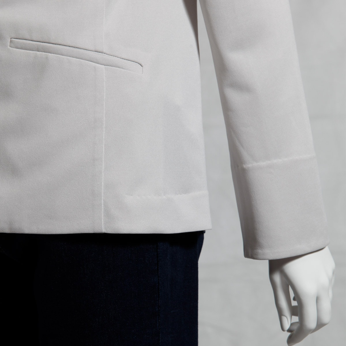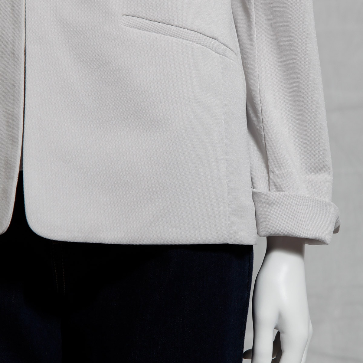 ■ポリエステル100%(リネンライクジャージ)●前左右ポケット・袖口スリット入り・後ろベンツ入り・前中心ホックあき●洗濯機OK●中国製