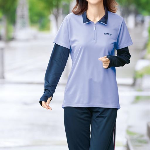 -お買い得ポイント-フロントは、ジップ使いで着脱がラクなTシャツです。胸元にはブランドロゴ刺しゅう入り。-デザイン-一枚で外歩きを楽しめる重ね着風デザイン。手の甲まで紫外線をガードする指穴付き。-素材特徴-ハニカム裏メッシュで、通気性がよく快適な着心地。