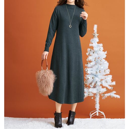 -お買い得ポイント-リラクシーな着心地ながら上品見えするニットワンピースです。友人宅でもきれい見えするのにリラックスして過ごせます。-デザイン-女性らしく仕上げたAラインシルエットで、ラクチンニットワンピも1枚で十分エレガント。上に羽織りやすいように肩まわり、袖はすっきり仕上げました。スタンドネックで首元もカバー。-素材特徴-あったか機能性繊維を配合したニットワンピース。適度に薄いのにあたたかく、ラクに着られる素材です。