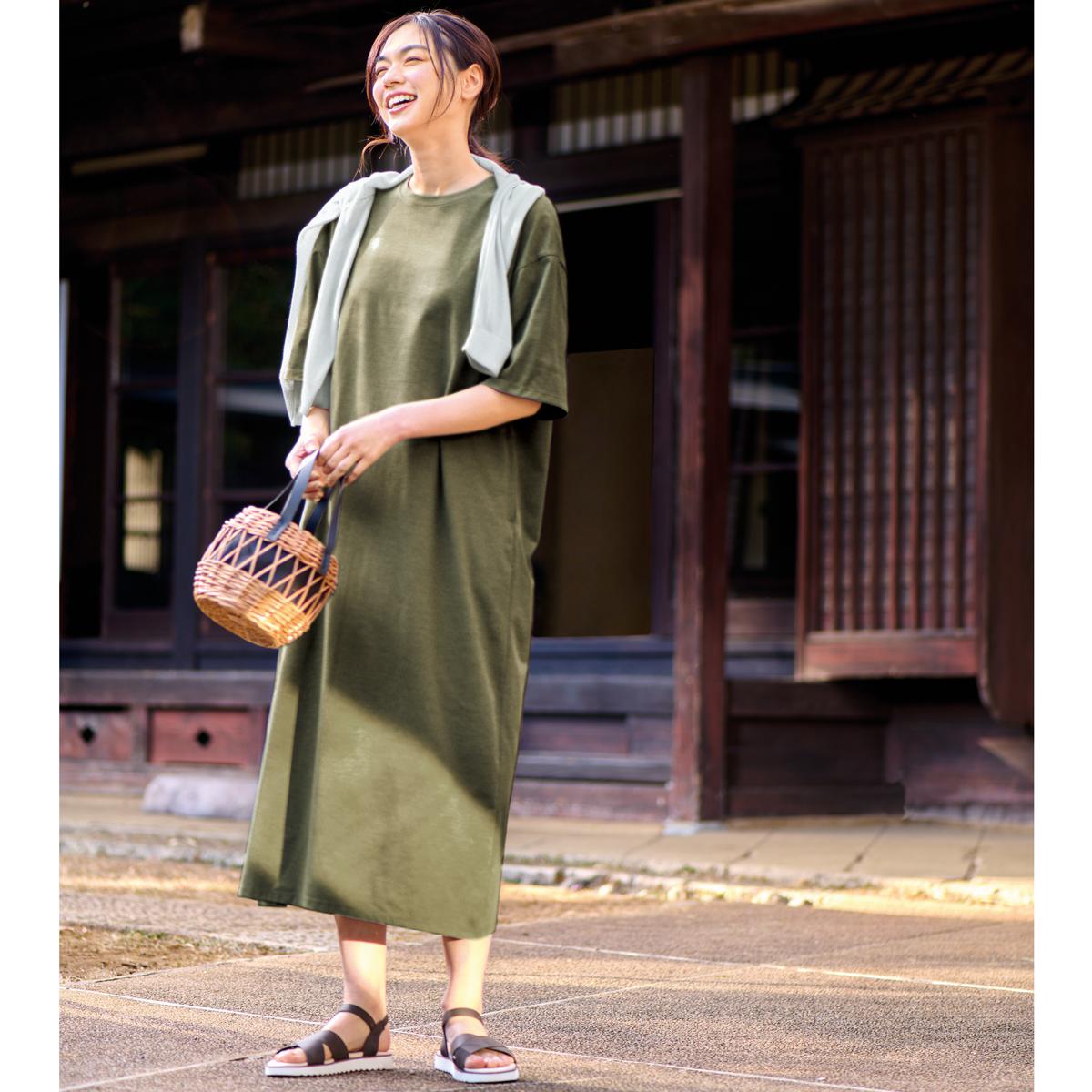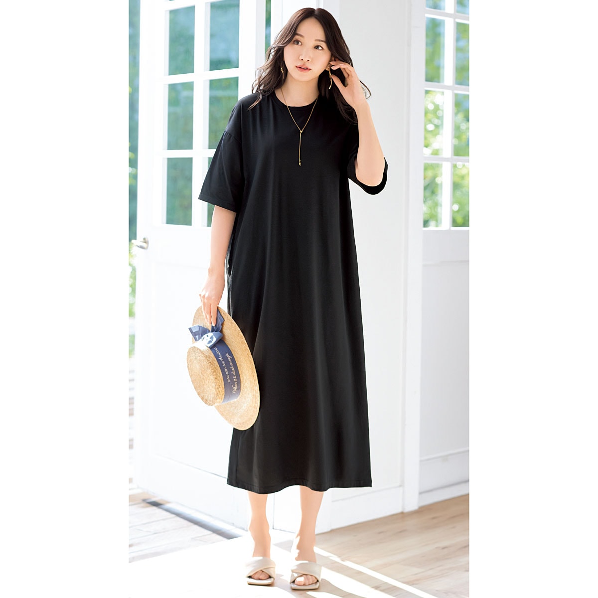 さらりとしたTシャツ素材のワンピースで夏でも快適に。洗濯機で洗えてデイリーユーズにぴったりです。