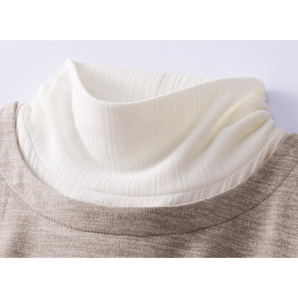 お買い得ポイント-インナーを重ねたようなハイネックで首元まで暖かです。-デザイン-首元のレイヤード使いで着ぶくれ感なし。ゆとりのあるシルエットと程よい肉感が体型をカバーします。-素材特徴-伸びやかで表情豊かな杢調ミル天竺素材。
