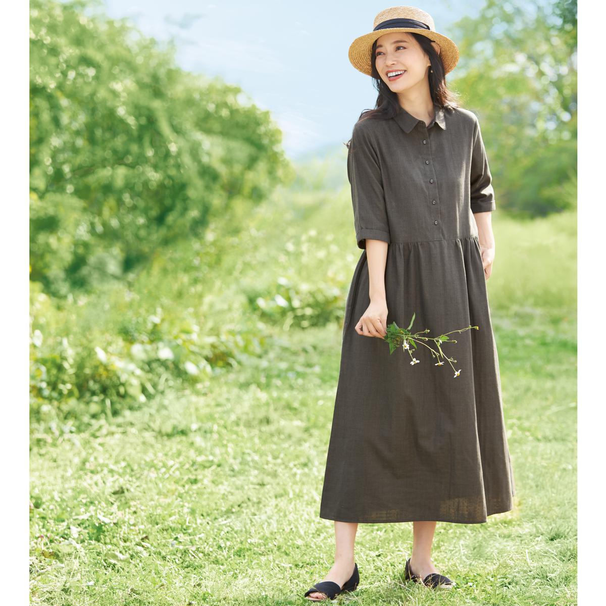 -お買い得ポイント-ふわりとしたシルエットや、ほんのり甘さが漂うナチュラルなテイストが肌に馴染んで、おしゃれ心が弾みます。-デザイン-ボリュームを抑えたギャザー使いですっきり見えます。共布のくるみボタンが可愛い。-素材特徴-コットンのようなナチュラルな風合いが特長。ポリエステル本来の速乾性を保ちながら、さらっとした着心地を持続します。洗濯してもシワになりにくいイージーケア素材。