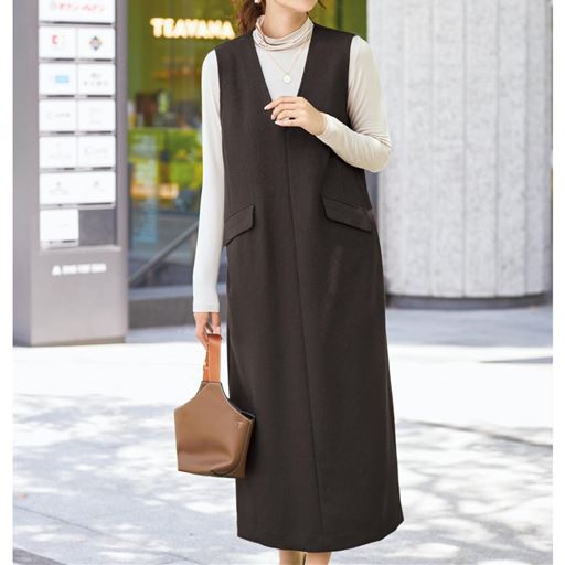 -お買い得ポイント-トップスやボトムスを合わせるだけで、簡単にコーディネートが完成します。ノーカラージャケットを合わせてスーツスタイルに。-デザイン-ほんのりAラインの細見えシルエット。-素材特徴-シワになりにくく、表情豊かな杢調素材。