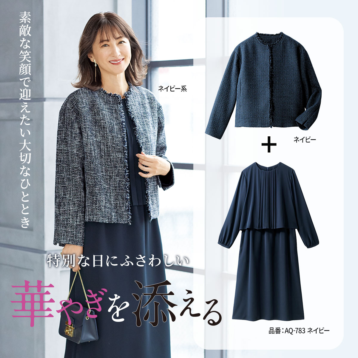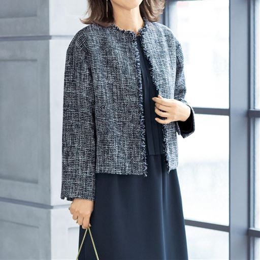 素敵な笑顔で迎えたい大切なひととき特別な日にふさわしい華やぎを添える!上質感を醸し出す柔らかなツイードジャケットです。