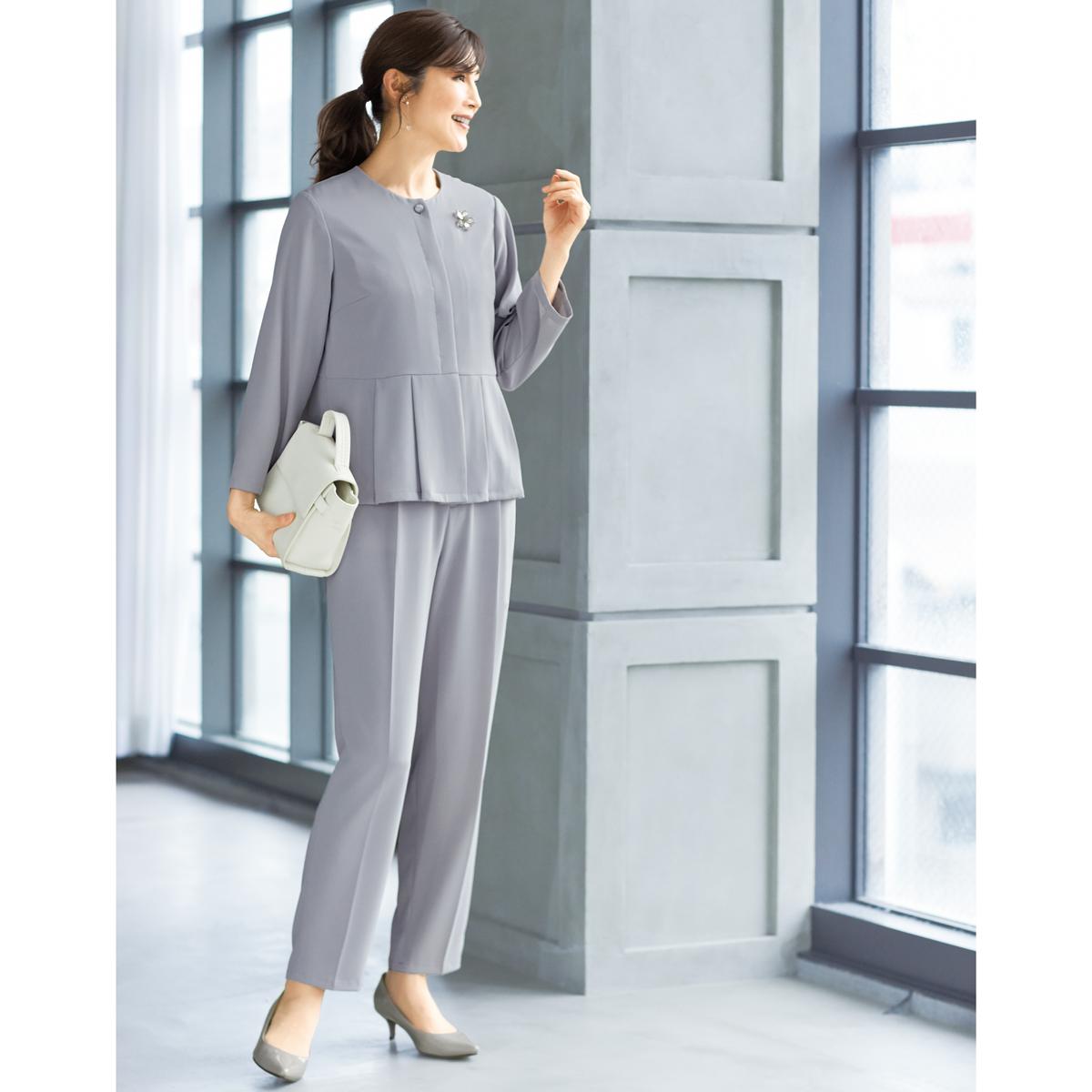 -お買い得ポイント-ウエスト周り施された装飾が腰回りの体型をカバーしています。下にブラウスを着て、羽織り風にしたり、同色のパンツを合わせるなど着回し自由自在。-デザイン-愛らしいペプラムデザインが腰まわりをカバー。すっきり上品な比翼仕立てで、羽織り風の着こなしも。-素材特徴-着用時シワになりにくく、洗濯機で洗えるので、お手入れも簡単です。