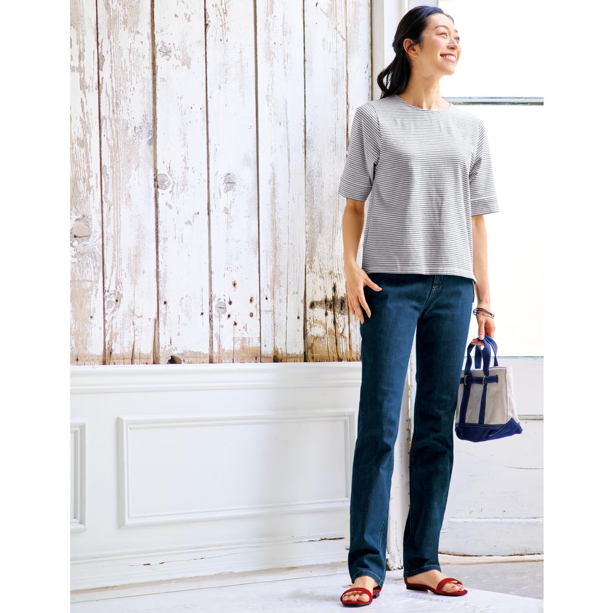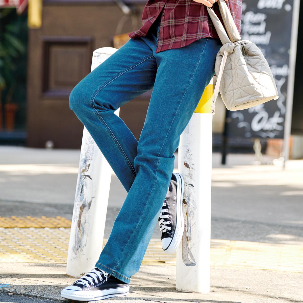 美シルエットストレートデニムパンツ(洗濯機OK)