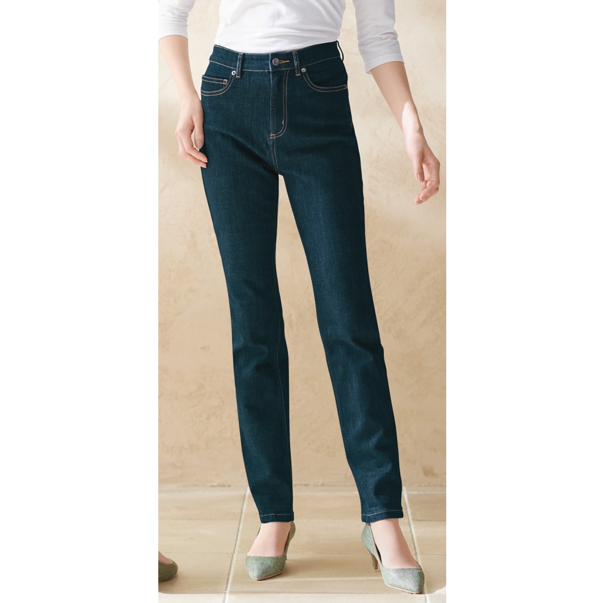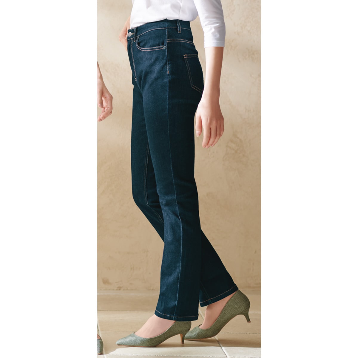 脚を美しく見せるシルエットにこだわって設計されたデニムパンツ。本格デニムでありながら、驚くほどはきやすく快適です。