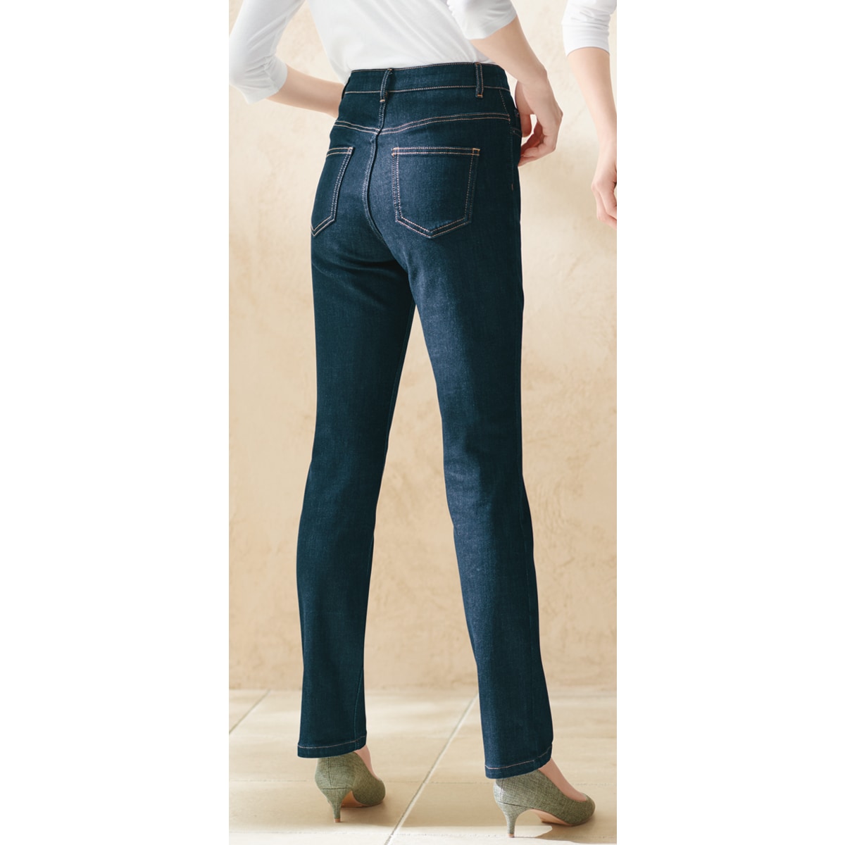 ヒップポケットの工夫で後ろ姿もぬかりなく 高めの位置と「ハ」の字の設計でヒップアップ&小尻見え