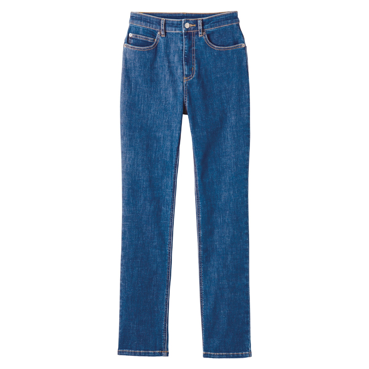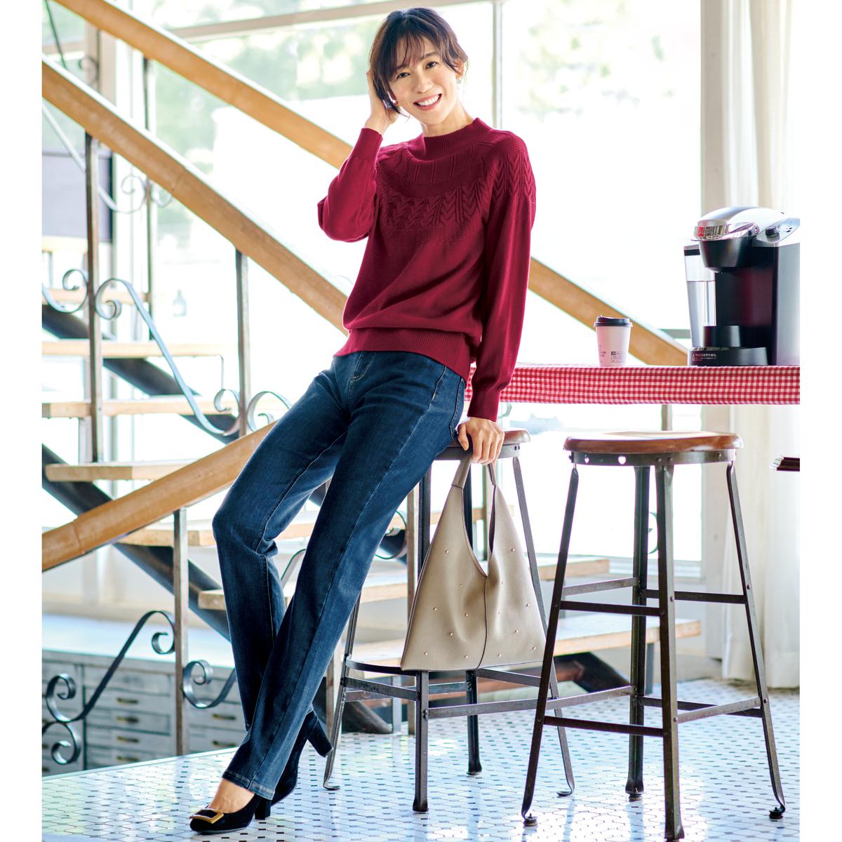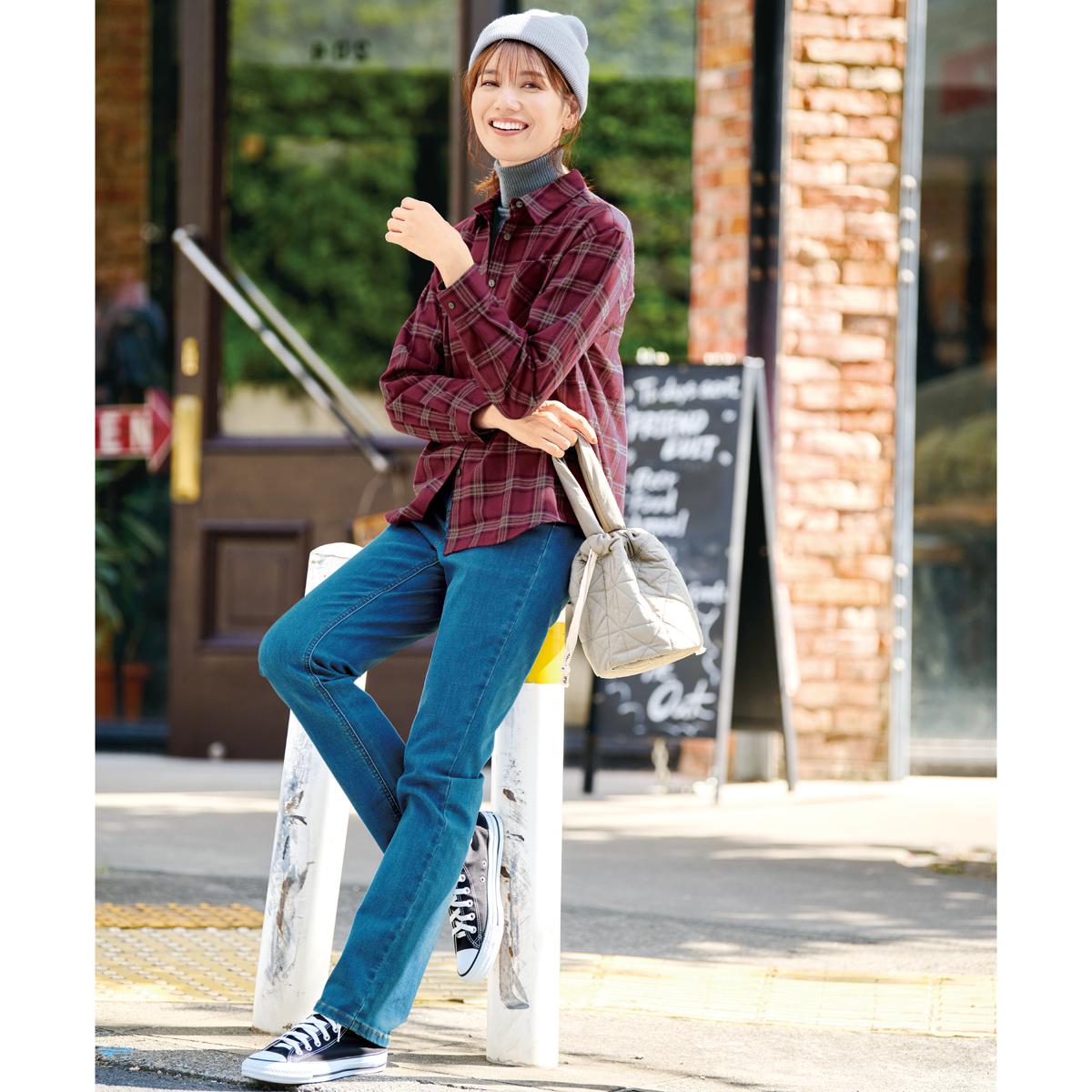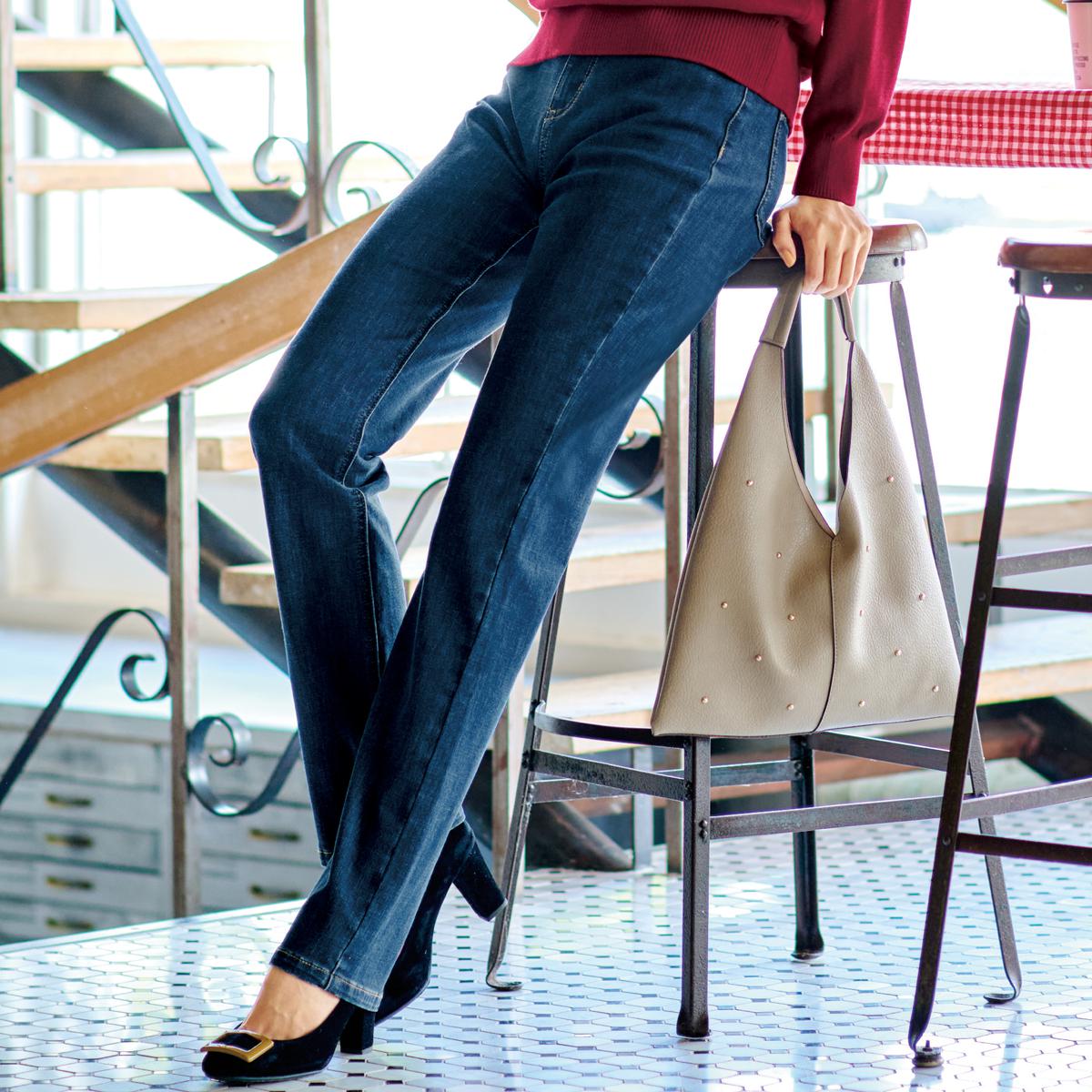 深めの股上設計なので、安心のはき心地なのに視覚効果で脚長に!本格デニムでありながら驚くほど履きやすく、感動の履き心地!