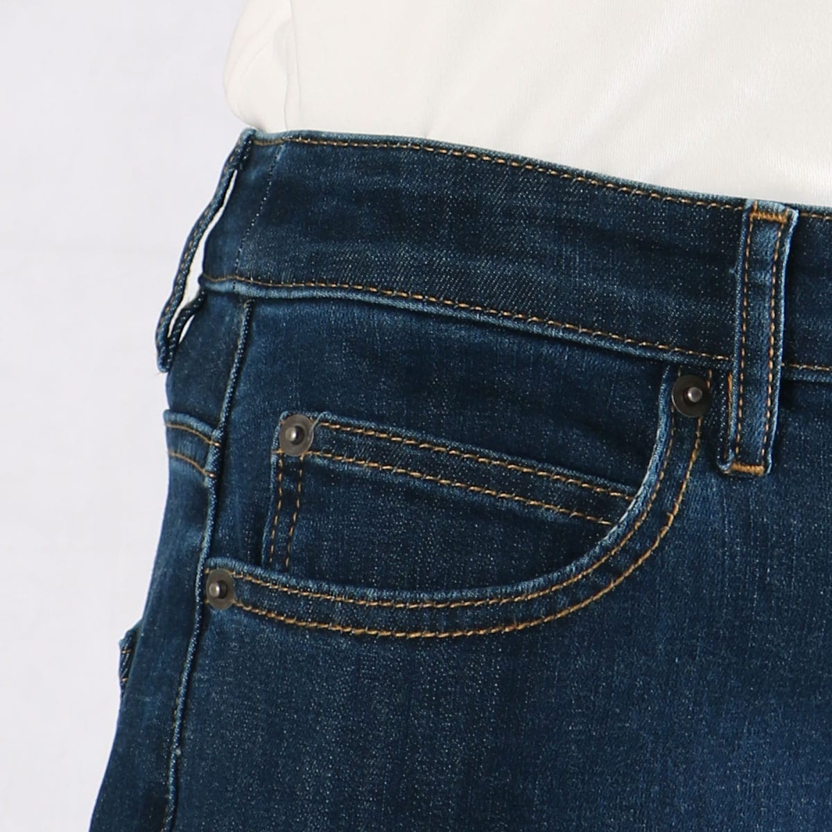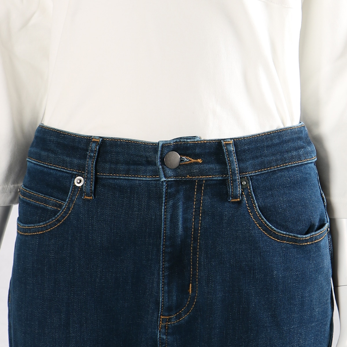 お腹まわりの窮屈感が少ない ウエストは伸び感があって、デニムなのにお腹まわりがラクラク
