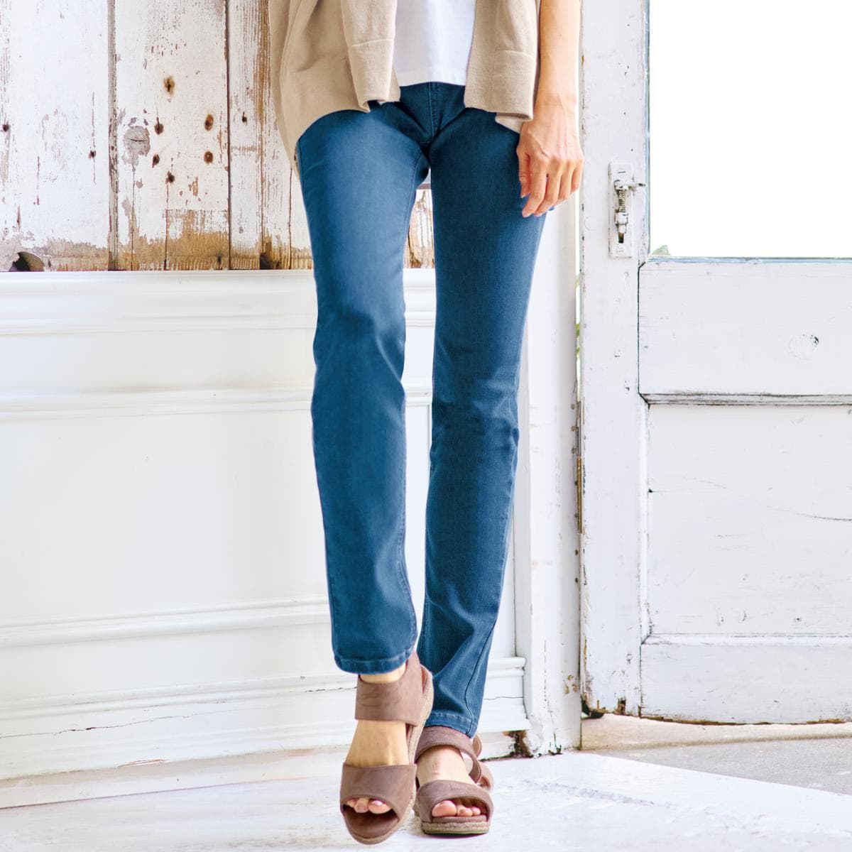 脚を美しく見せるシルエットにこだわって設計されたデニムパンツ。本格デニムでありながら、驚くほどはきやすく快適です。