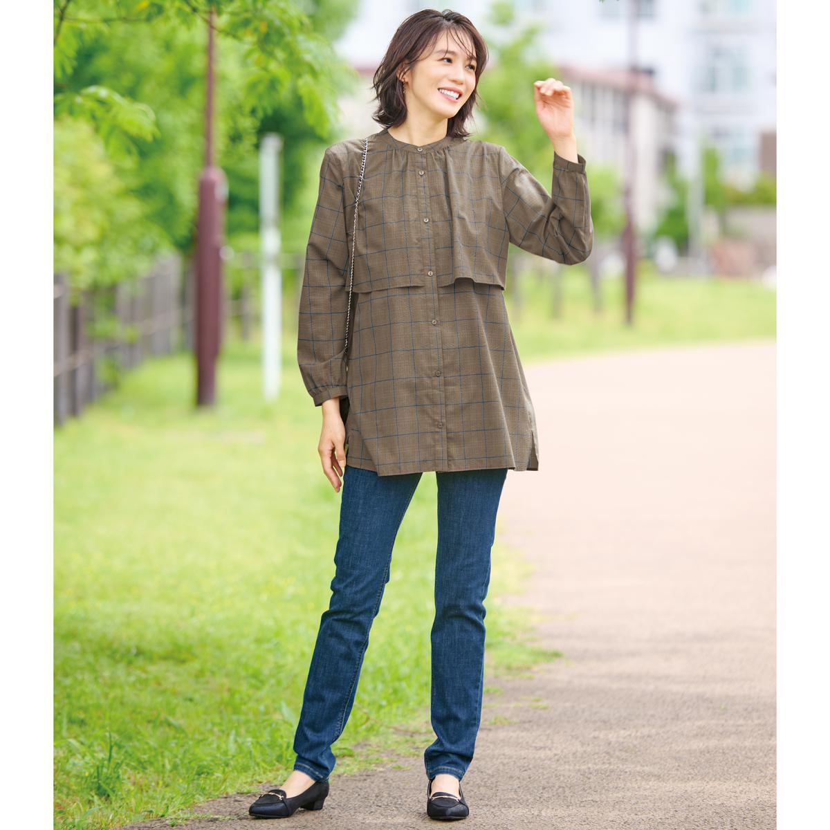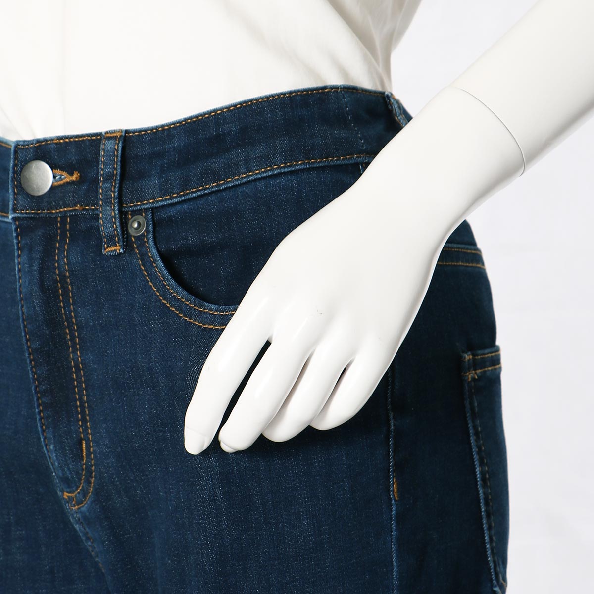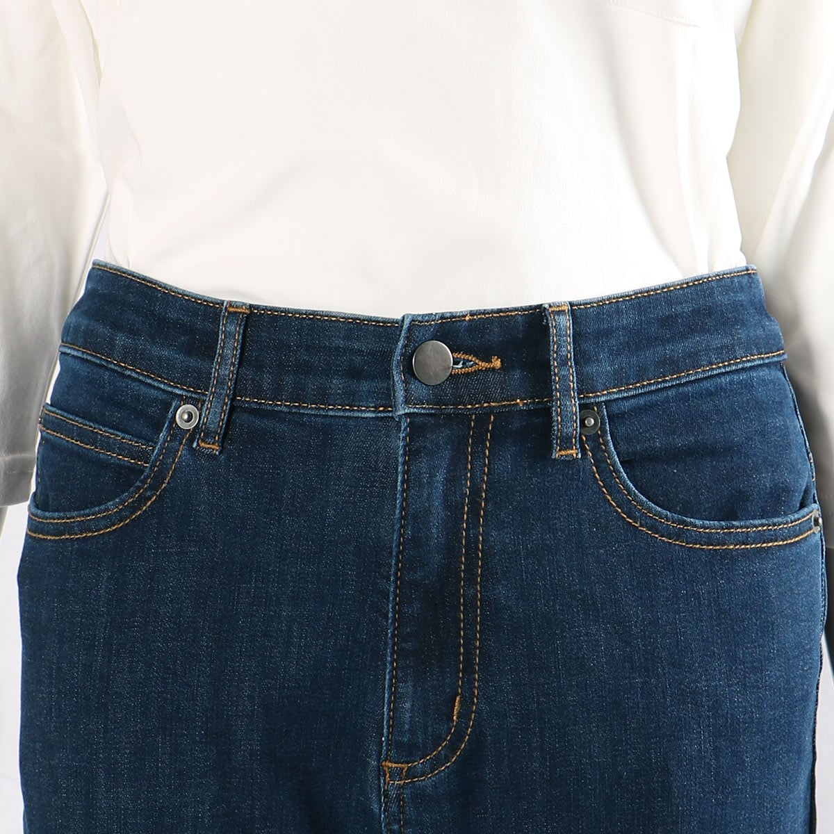 お腹まわりの窮屈感が少ない ウエストは伸び感があって、デニムなのにお腹まわりがラクラク
