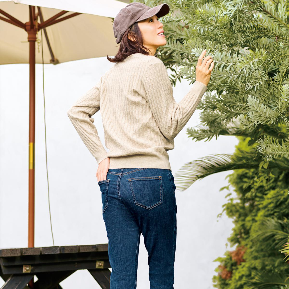 ヒップポケットの工夫で後ろ姿もぬかりなく 高めの位置と「ハ」の字の設計でヒップアップ&小尻見え