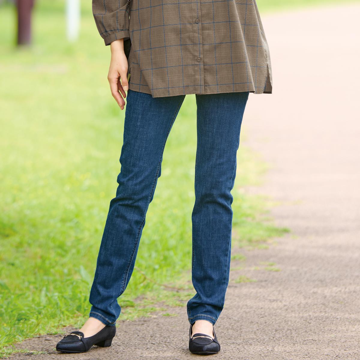 -お買得ポイント-ファスナー開きの本格仕様なのできちんと見えが叶います。トップスインしてもサマになる!-デザイン-お客様の声から生まれた細見えスキニー。どこから見ても脚が細く美しく見えるように仕上げました。深めの股上設計なので、安心のはき心地なのに視覚効果で脚長に!-素材特徴-肌ざわりが良く程よい伸縮性が嬉しい綿混素材。幅広いシーズンに対応する生地の厚さが魅力です。元に戻る力も強いのでひざが出にくいのが嬉しい!