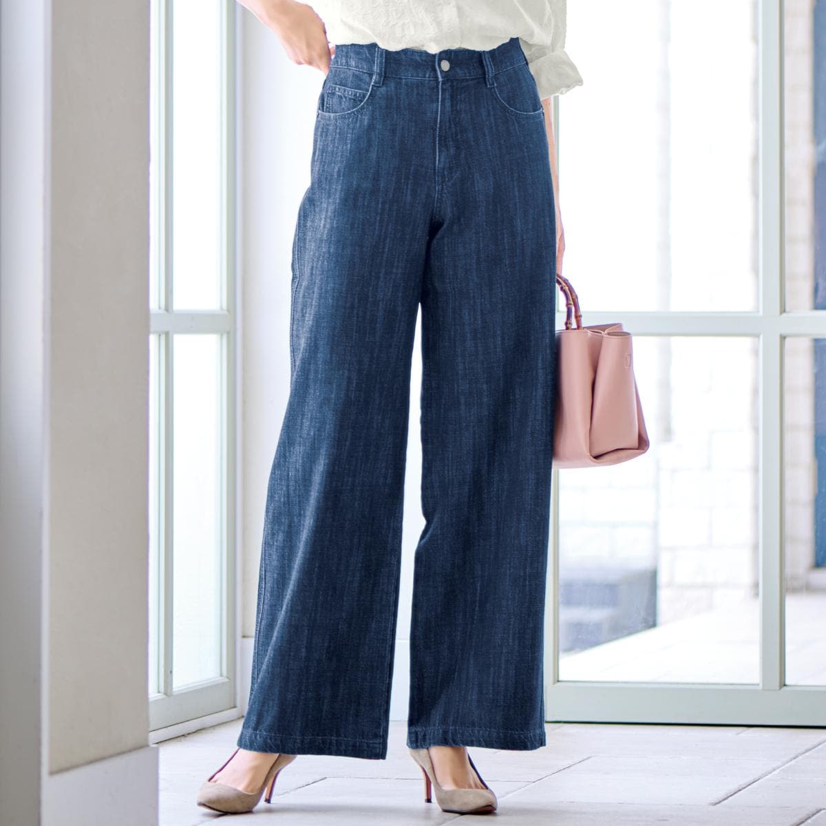 甘撚り素材でやわらかな着心地ワイドデニムパンツ(綿100%・生地日本製・洗濯機OK)