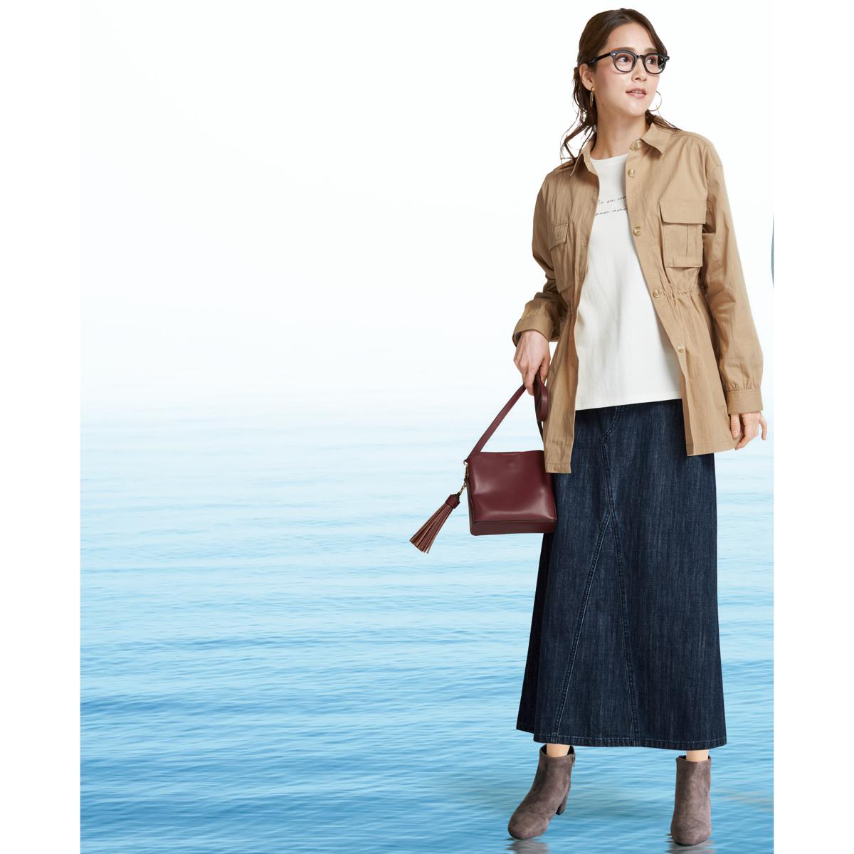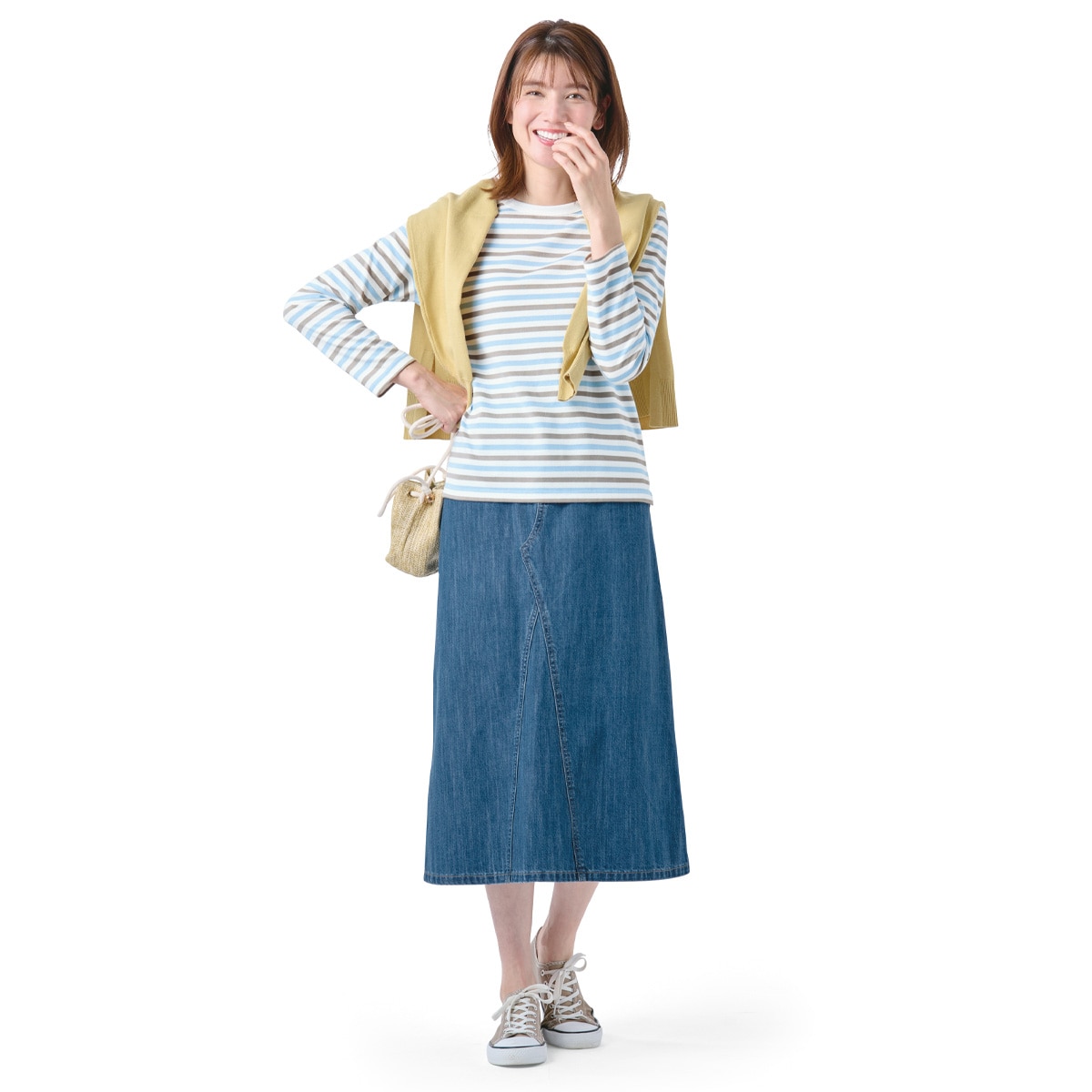 甘撚り素材でやわらかな着心地デニムロングスカート