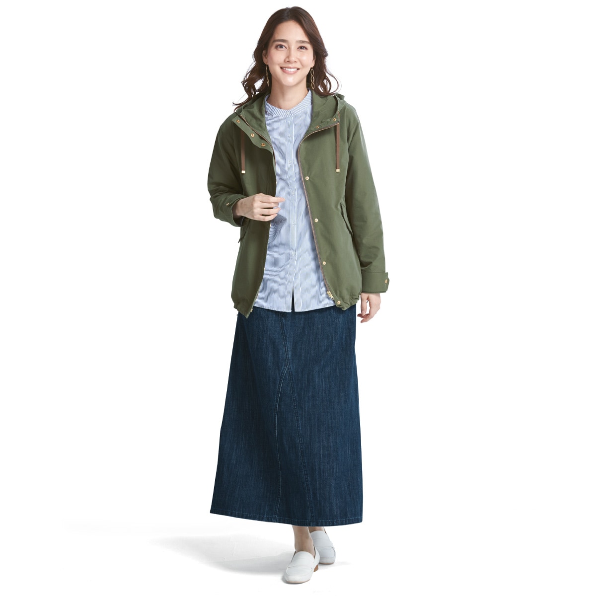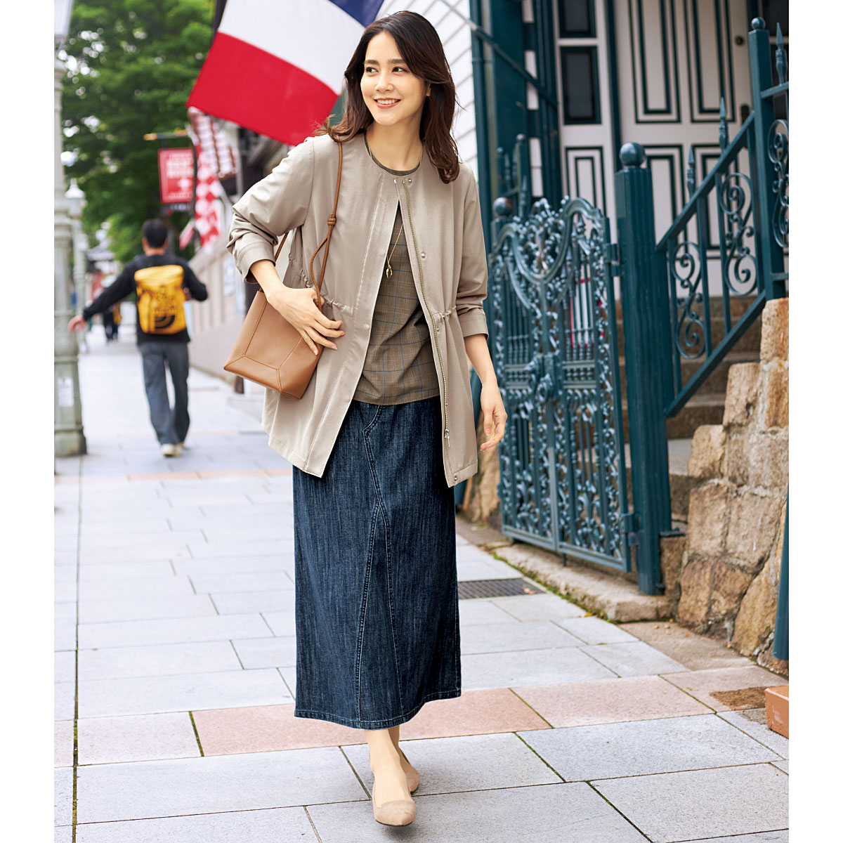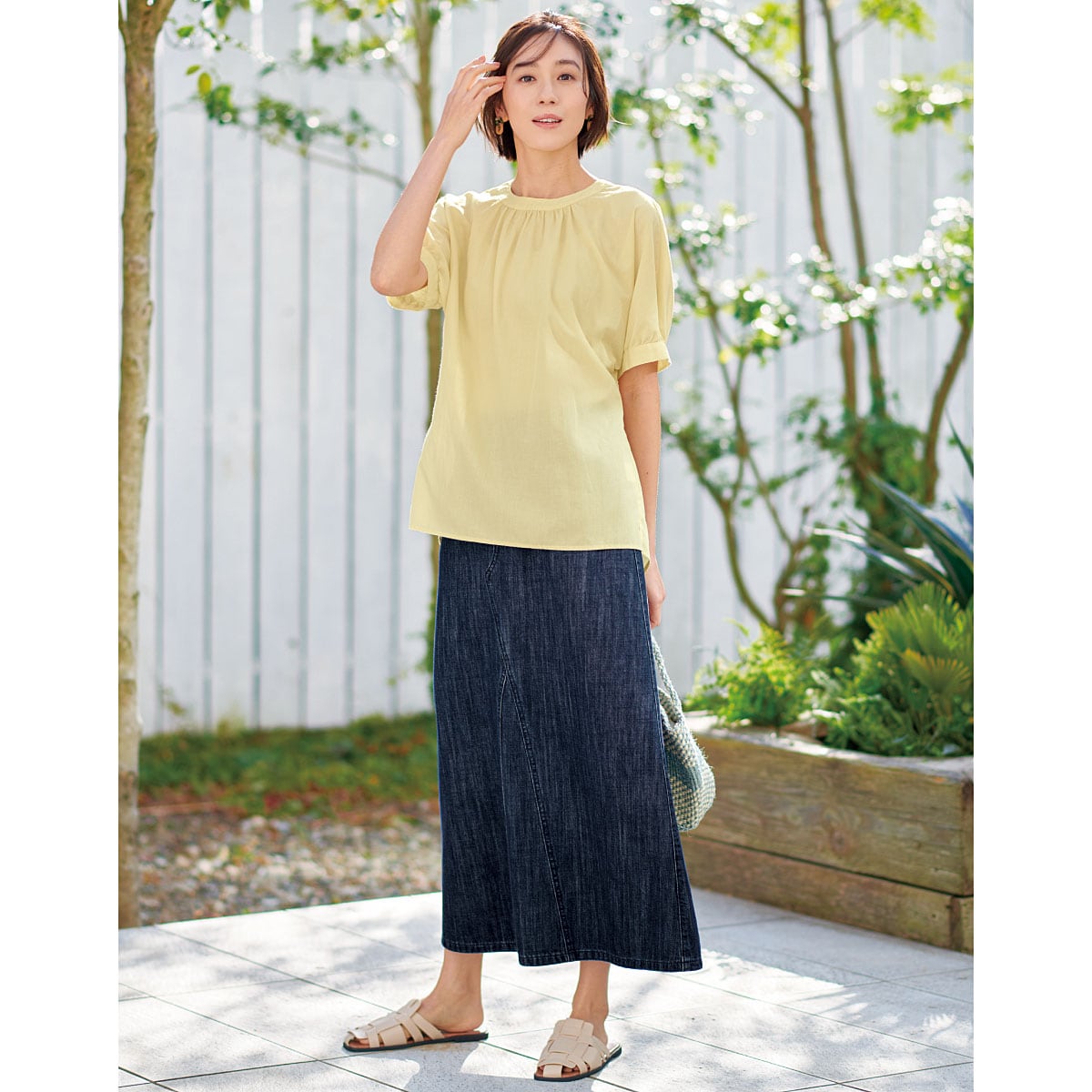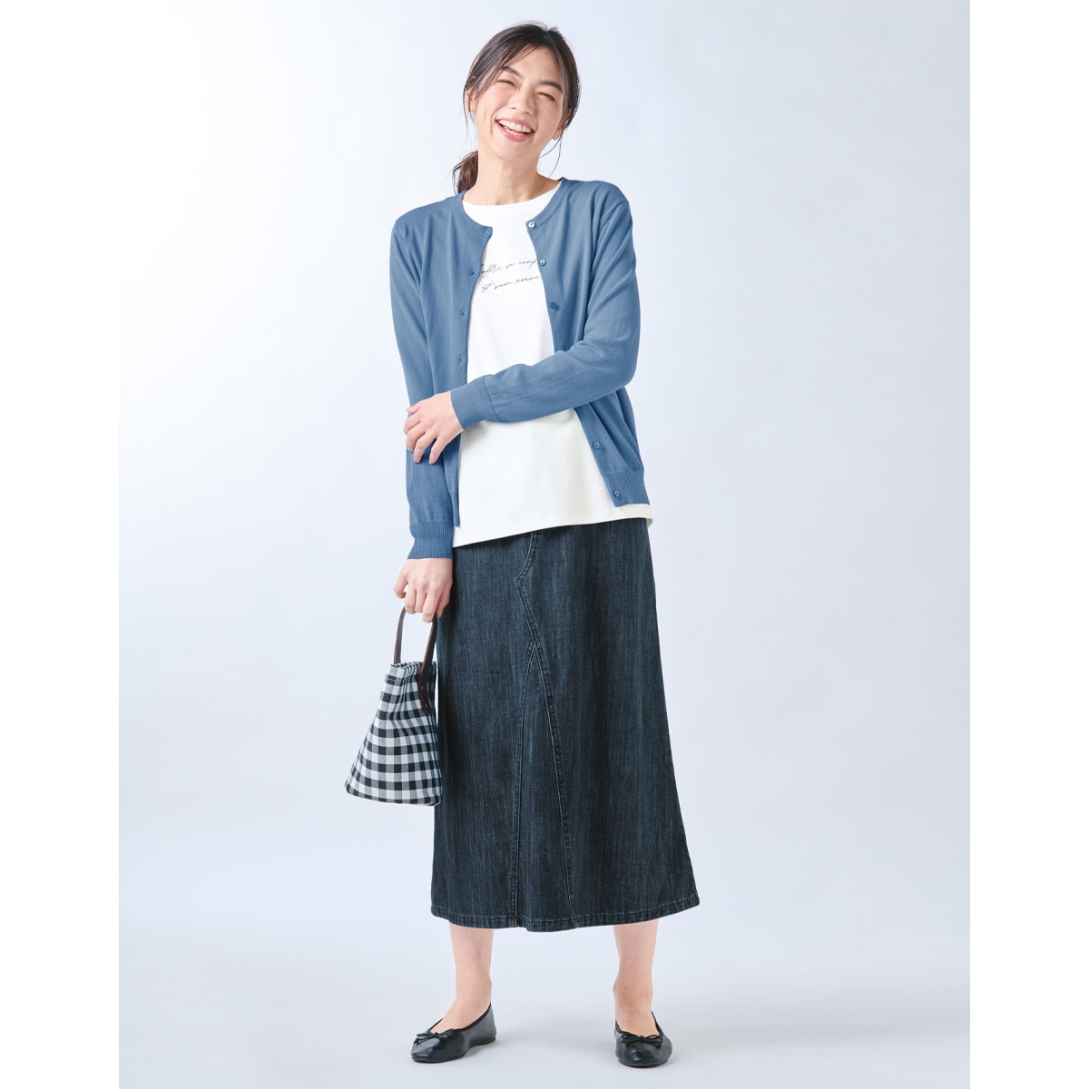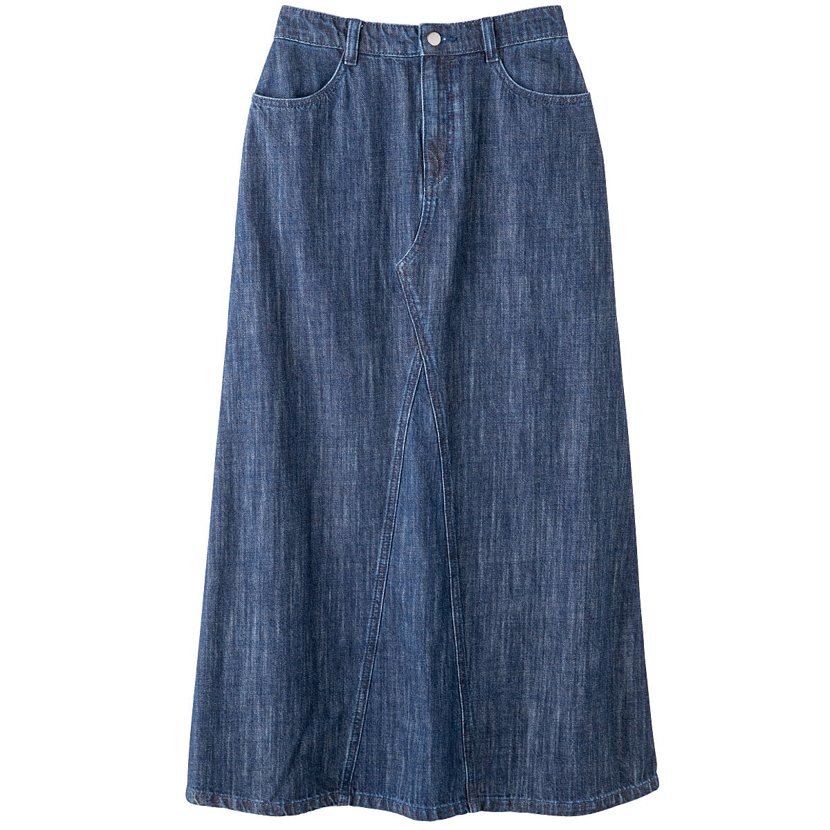 甘撚り素材でやわらかな着心地デニムロングスカート(綿100%・生地日本製・洗濯機OK)