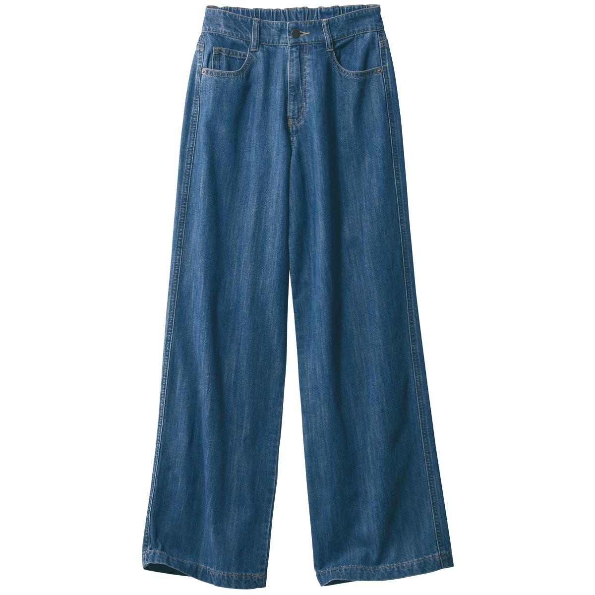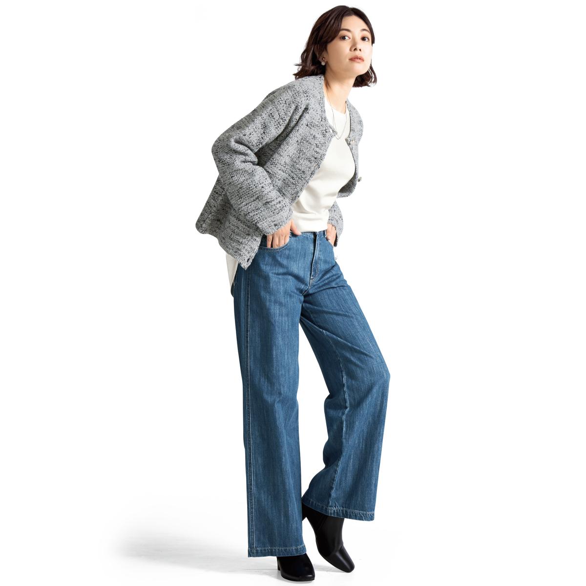 甘撚り素材でやわらかな着心地ワイドデニムパンツ(KUROKI・綿100%・生地日本製・洗濯機OK)