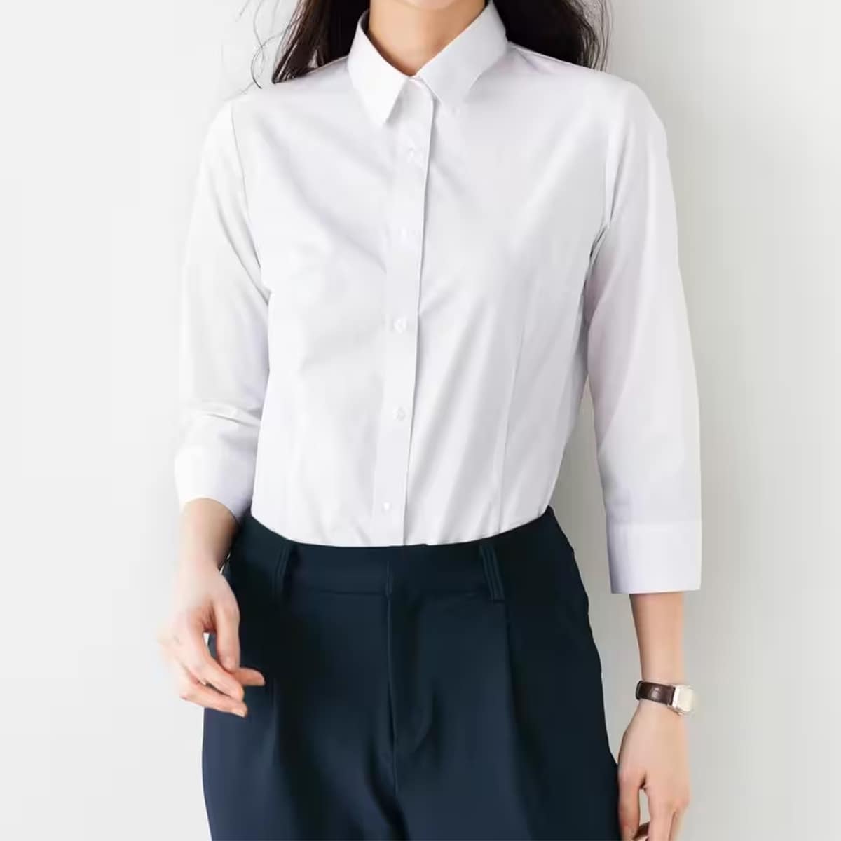 同デザイン2枚組でオトク。しかも簡単ケア。デイリー使いに重宝する2枚組レギュラーカラーシャツ(7分袖)