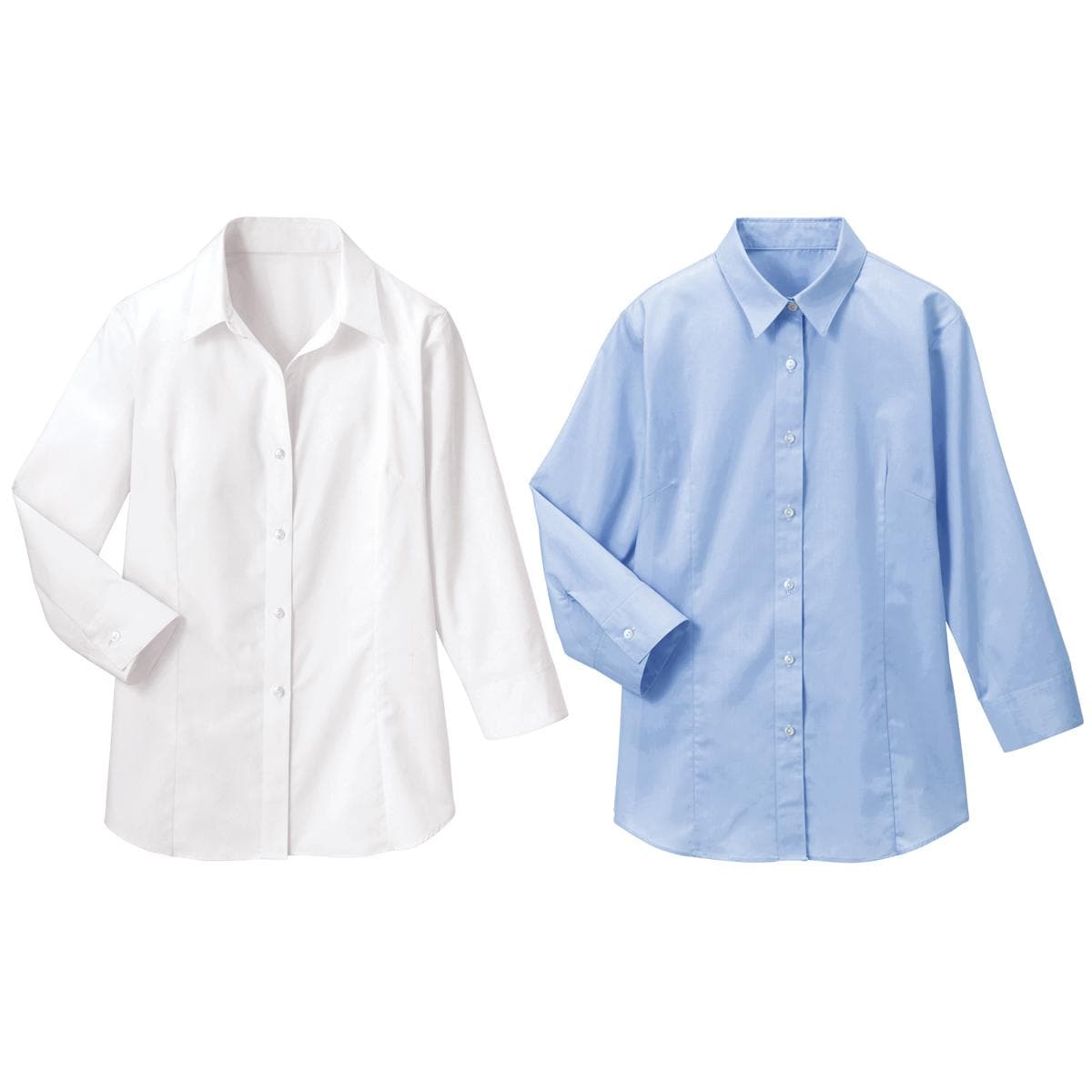 オフィスなど幅広いシーンで活躍する人気の「形態安定シャツ」が2枚組みに!!すっきりと見えて爽やかな印象の7分袖タイプ。お手入れはイージーアイロンでOKなポリエステル混素材。お仕事などデイリー使いに重宝します。2枚の色の組み合わせは、3パターンから選べます。