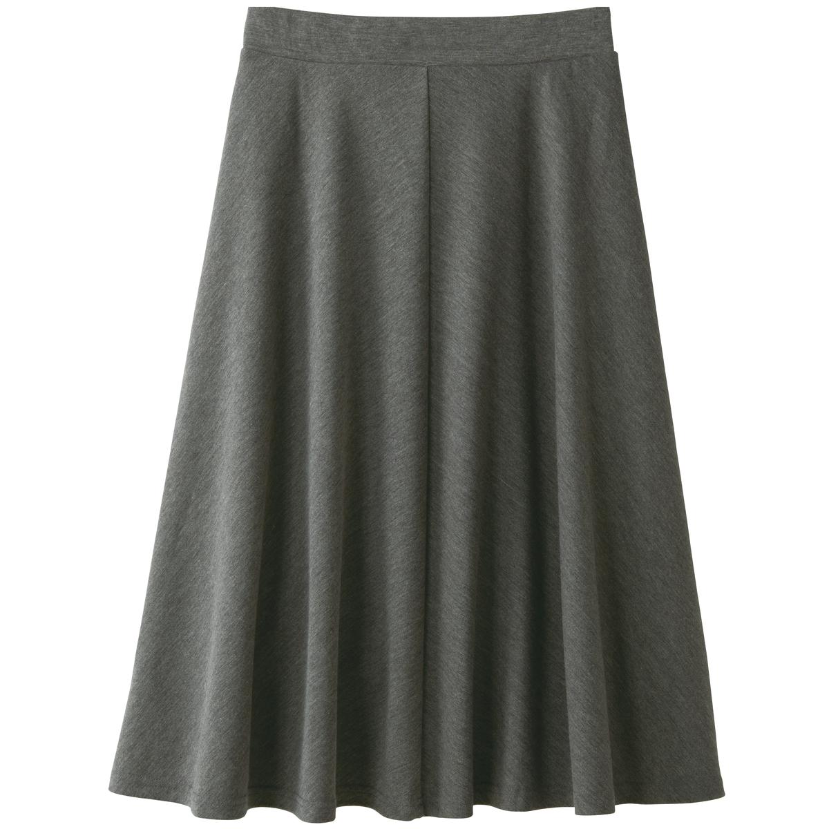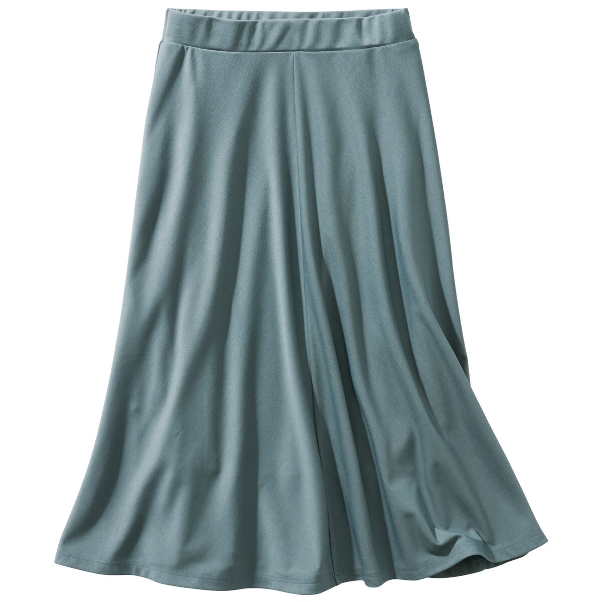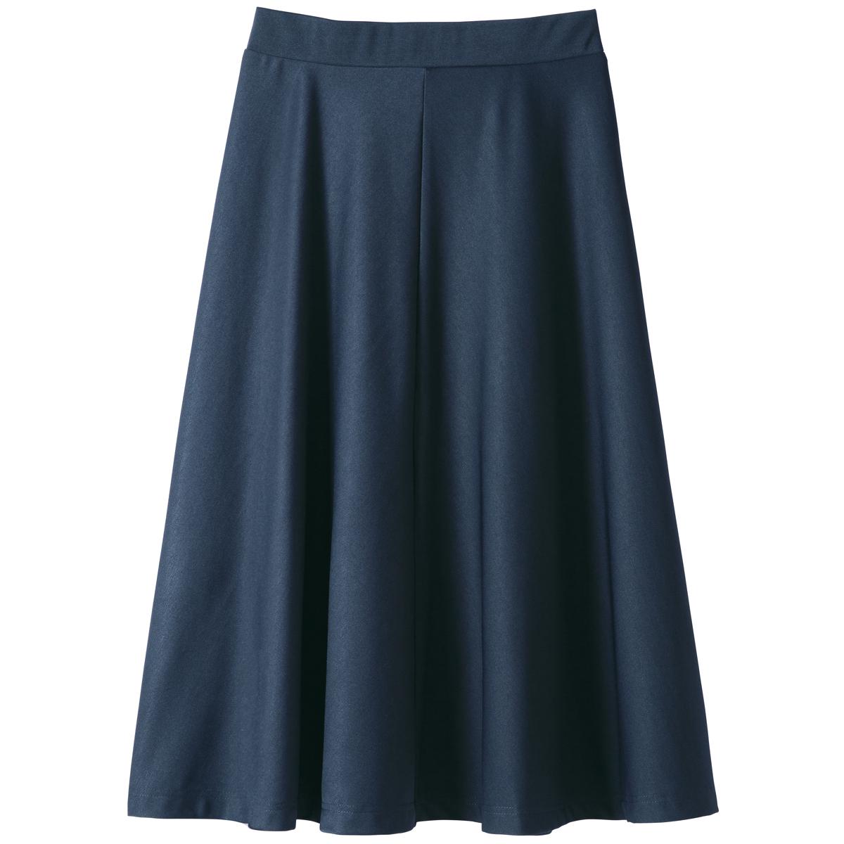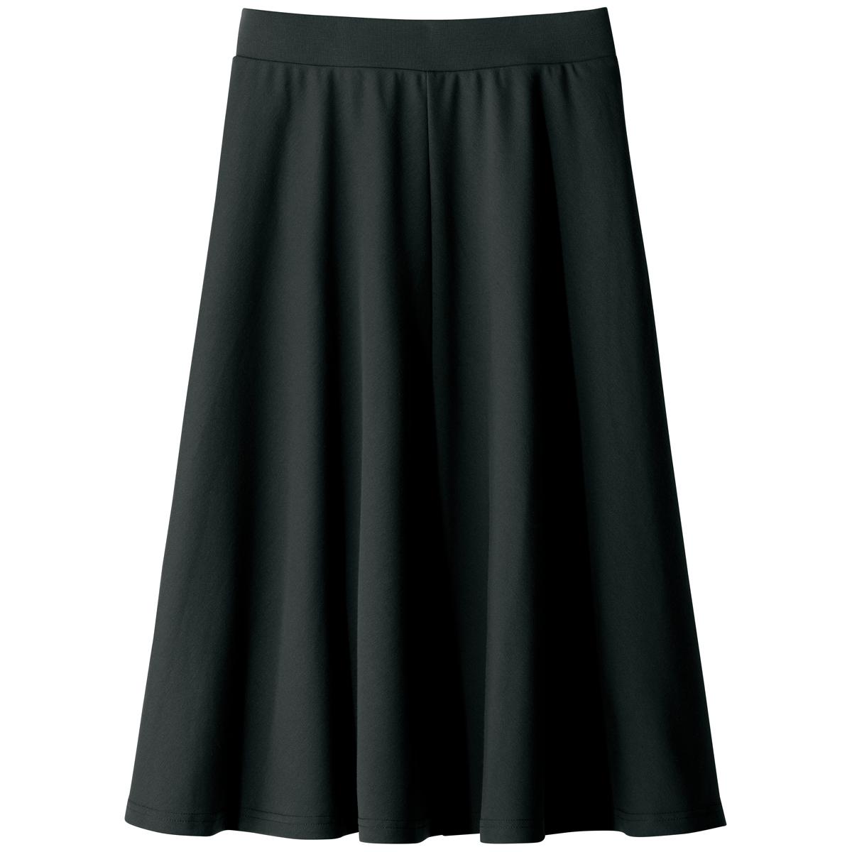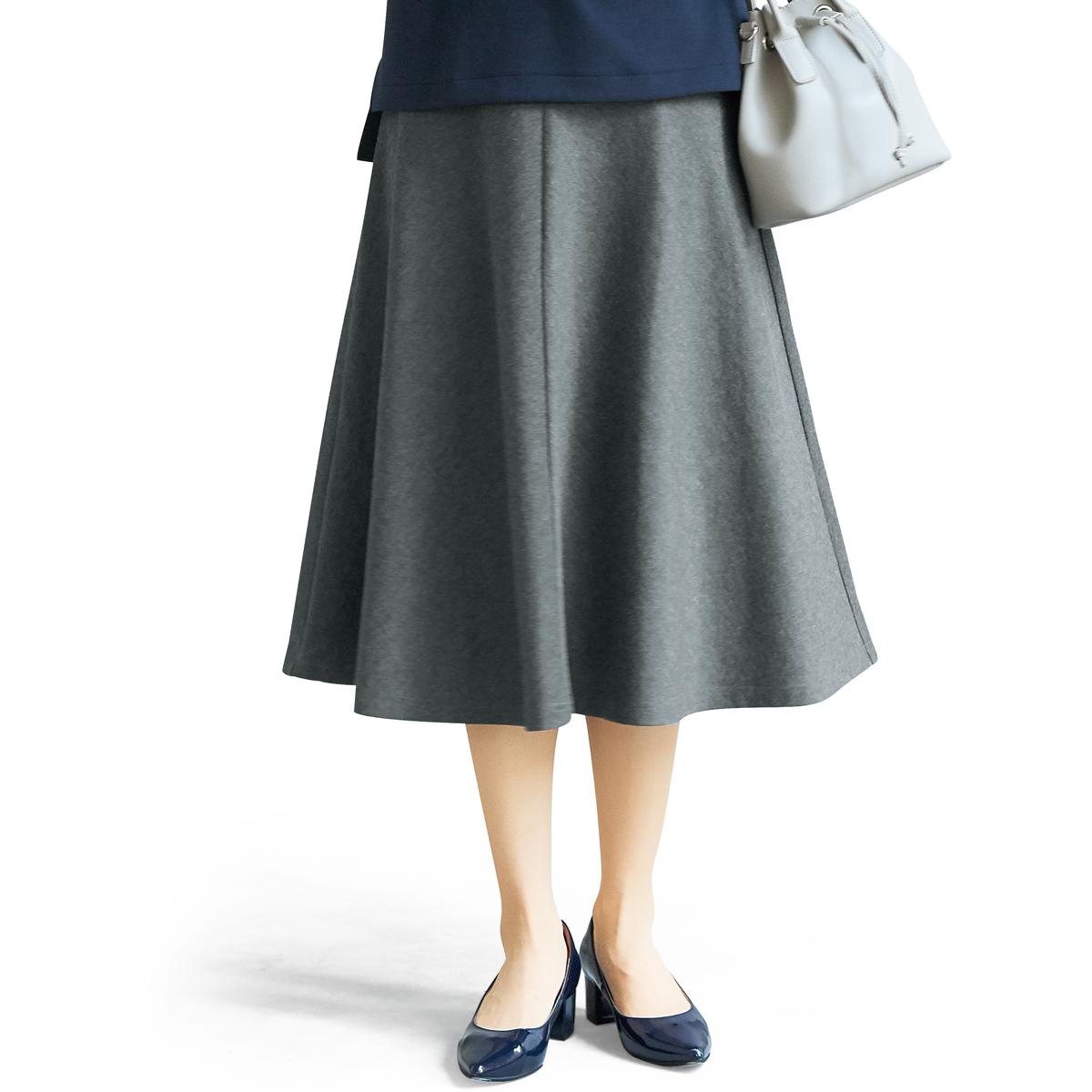 -お買い得ポイント-着まわしやすくきちんと感があるので、オンオフ使い分けできる優秀アイテムです。スカート丈はお好みで選べる2種類の膝下丈をご用意しています。ご家庭の洗濯機で洗えるのもうれしいポイント。-デザイン-ゆるやかなフレアがきれいなボリューム感を演出する4枚はぎで、コーディネートしやすい上品なシルエット。ウエストは総ゴム仕様に見えないフラットなつくりで、ラクなはき心地とスマートな見た目を両立させました。-素材特徴-程よい肉厚感とストレッチ性があり、はき心地のよいやわらかなカットソー