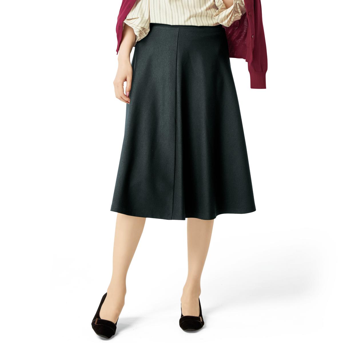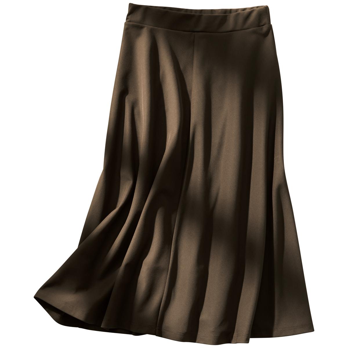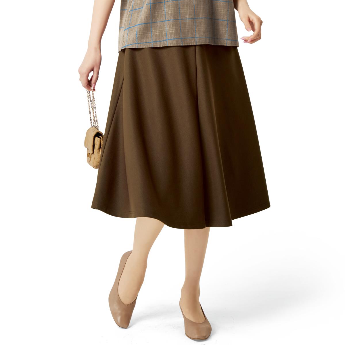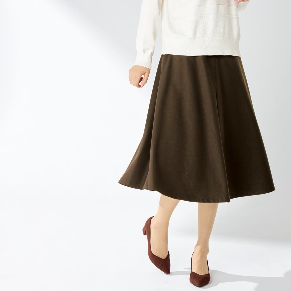 -ポイント-着まわしやすくきちんと感があるので、オンオフ使い分けできる優秀アイテムです。スカート丈はお好みで選べる2種類の膝下丈をご用意しています。ご家庭の洗濯機で洗えるのもうれしいポイント。-デザイン-ゆるやかなフレアがきれいなボリューム感を演出する4枚はぎで、コーディネートしやすい上品なシルエット。ウエストは総ゴム仕様に見えないフラットなつくりで、ラクなはき心地とスマートな見た目を両立させました。-素材特徴-程よい肉厚感とストレッチ性があり、はき心地のよいやわらかなカットソー素材。